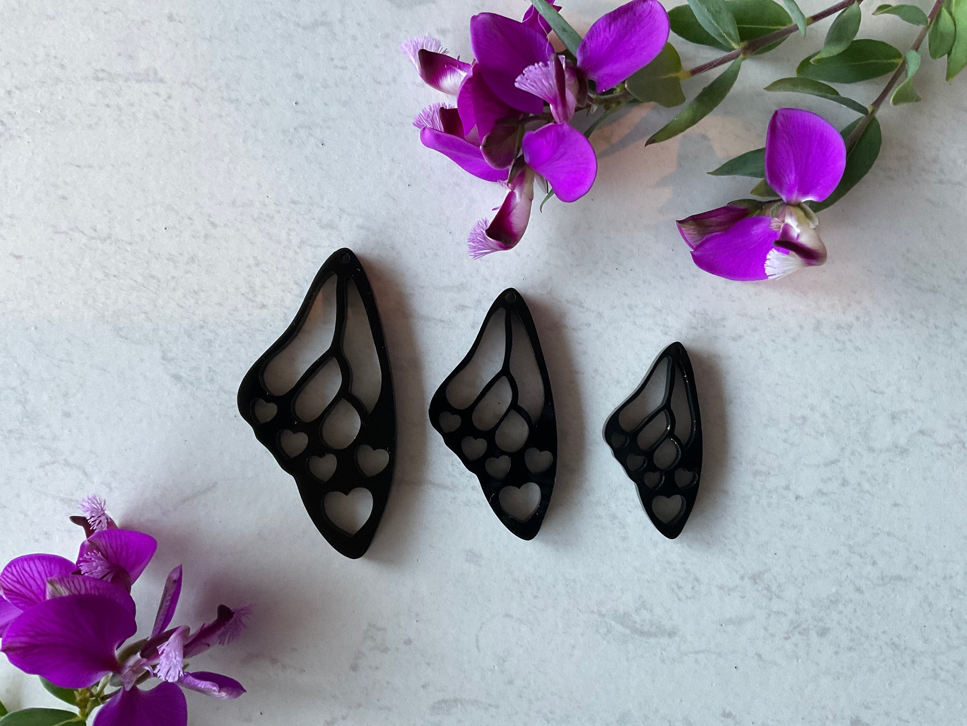 Black Aphrodite Love Heart Butterfly Wing Pair Charm Acrylic