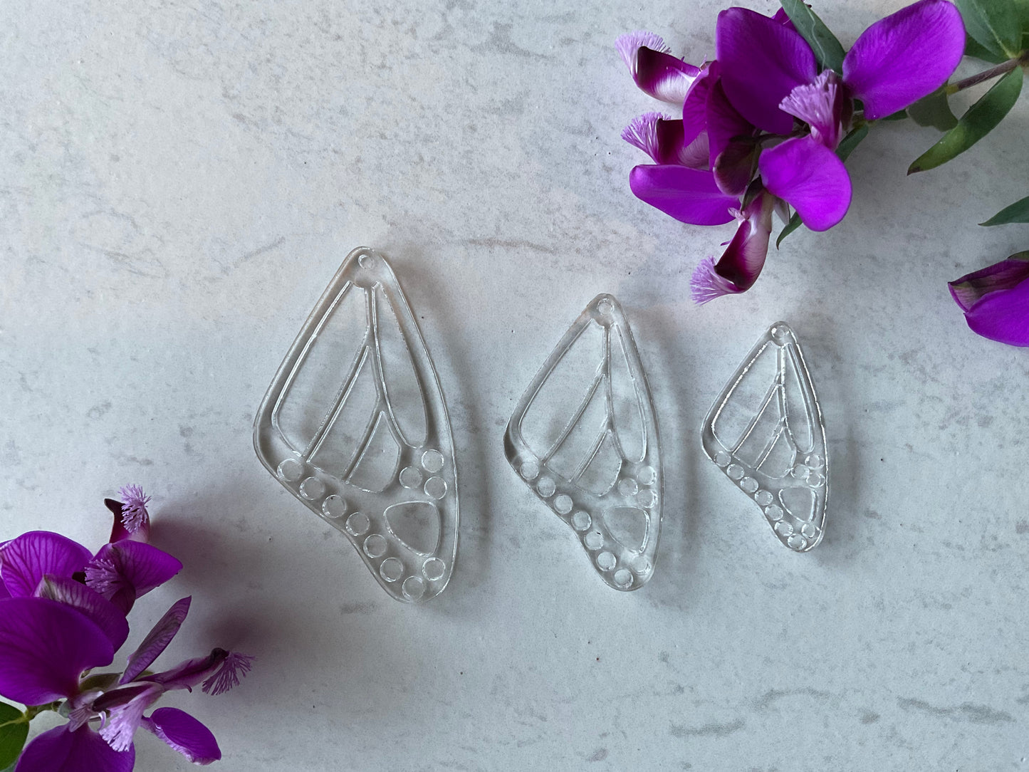 Clear Monarch Butterfly Single Wing Pair Charm Acrylic