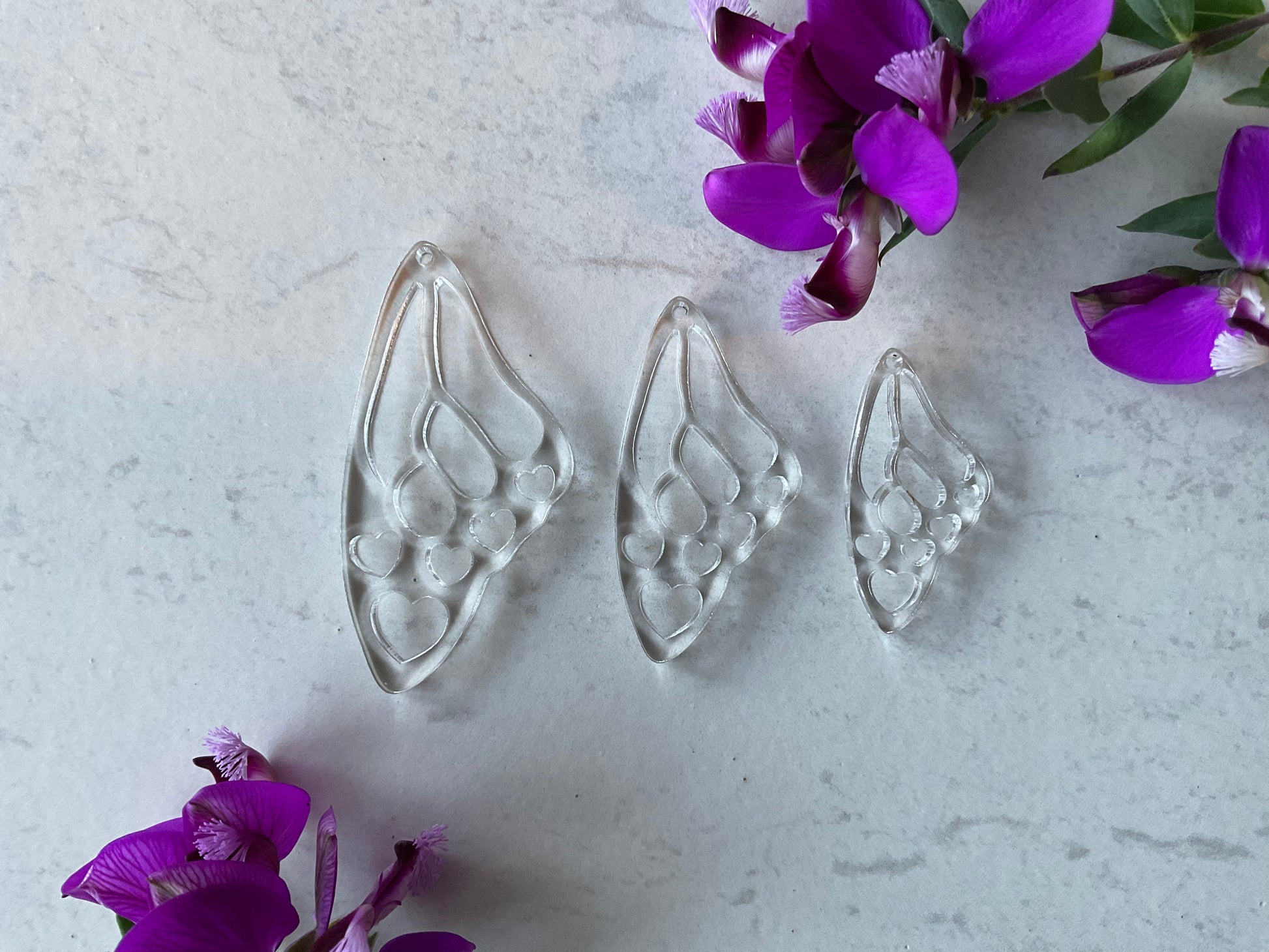 Clear Aphrodite Love Heart Butterfly Wing Pair Charm Acrylic