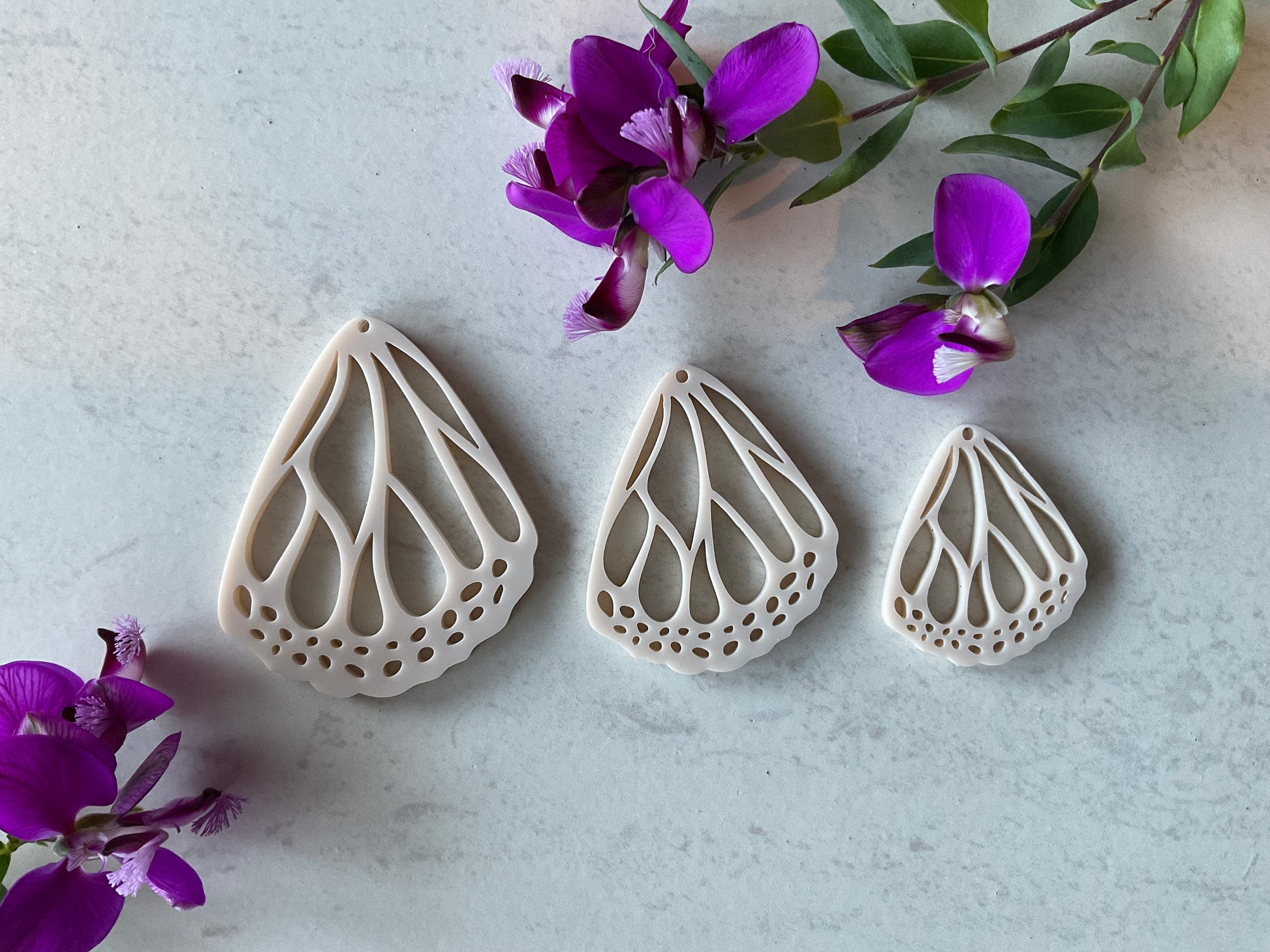Ivory Painted Lady Butterfly Wing Pair Charm Acrylic