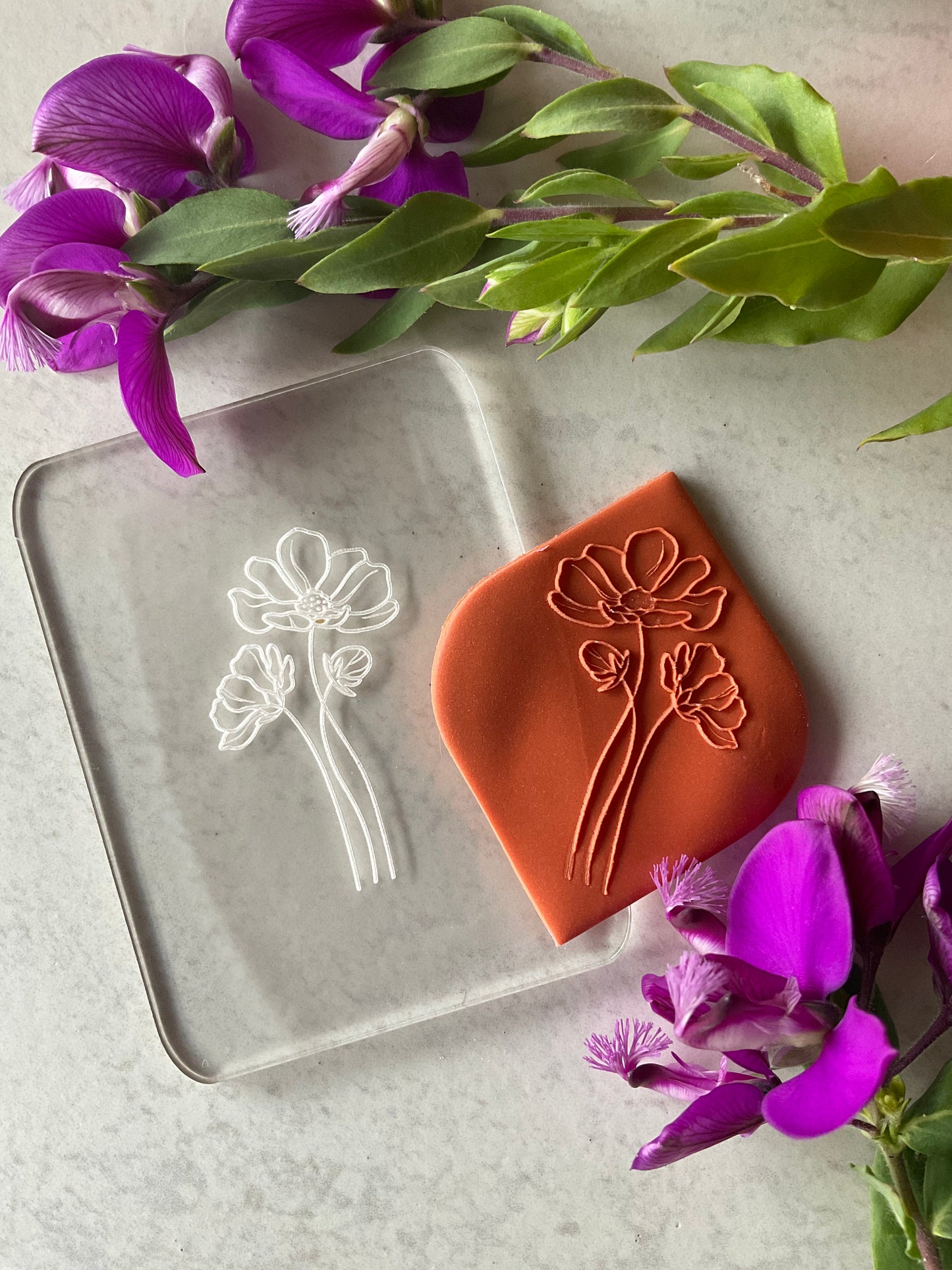 Cosmos Traditional Birth Flower Acrylic Texture Stamp October