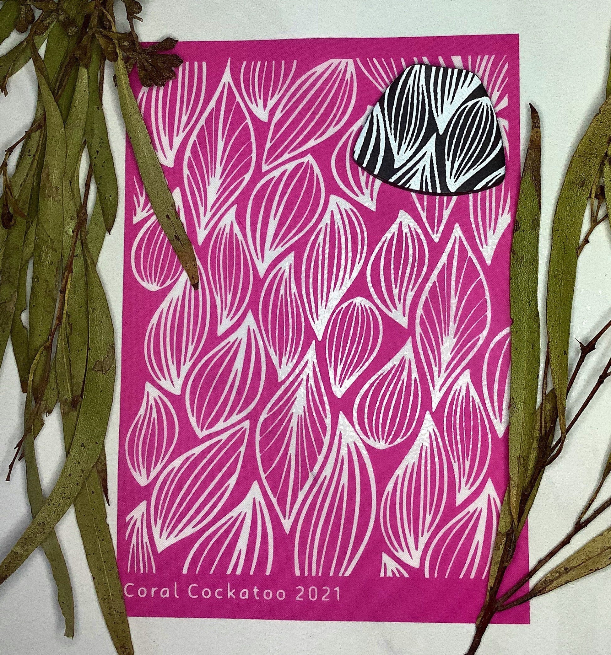 Important Info: Use your unique Coral Cockatoo Silkscreen for anything from earring and jewellery pieces to paper craft and card creations and more! The possibilities are limited only by your imagination and creativity!