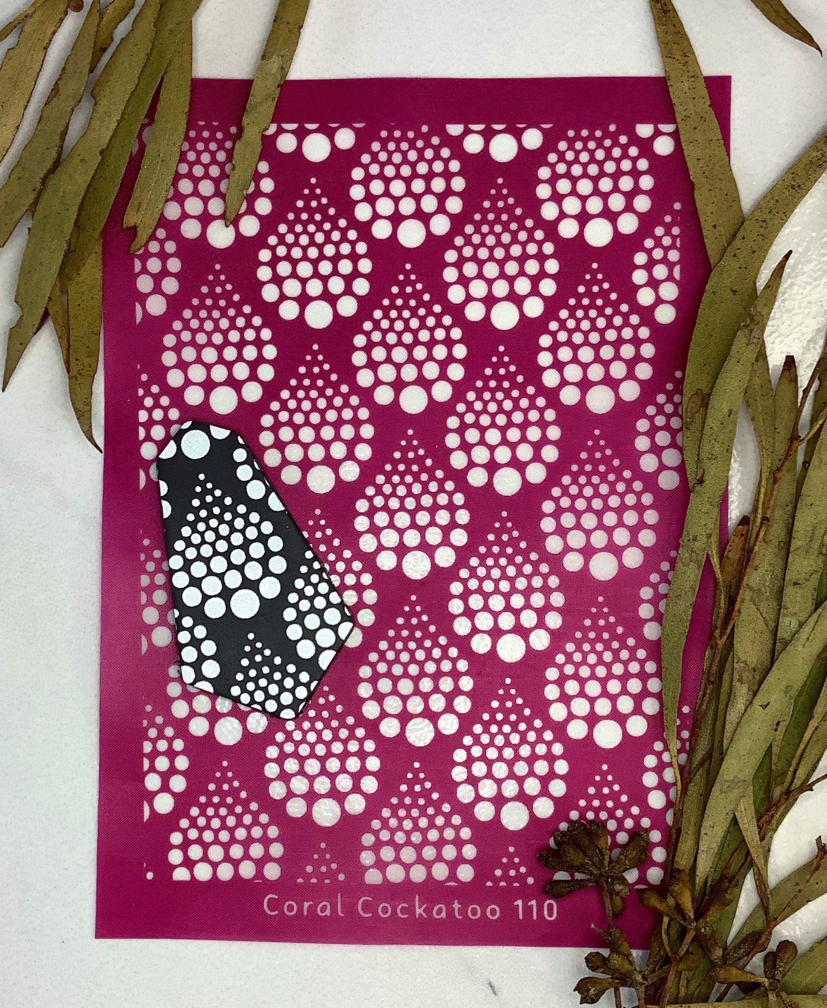 Important Info: Use your unique Coral Cockatoo Silkscreen for anything from earring and jewellery pieces to paper craft and card creations and more! The possibilities are limited only by your imagination and creativity!