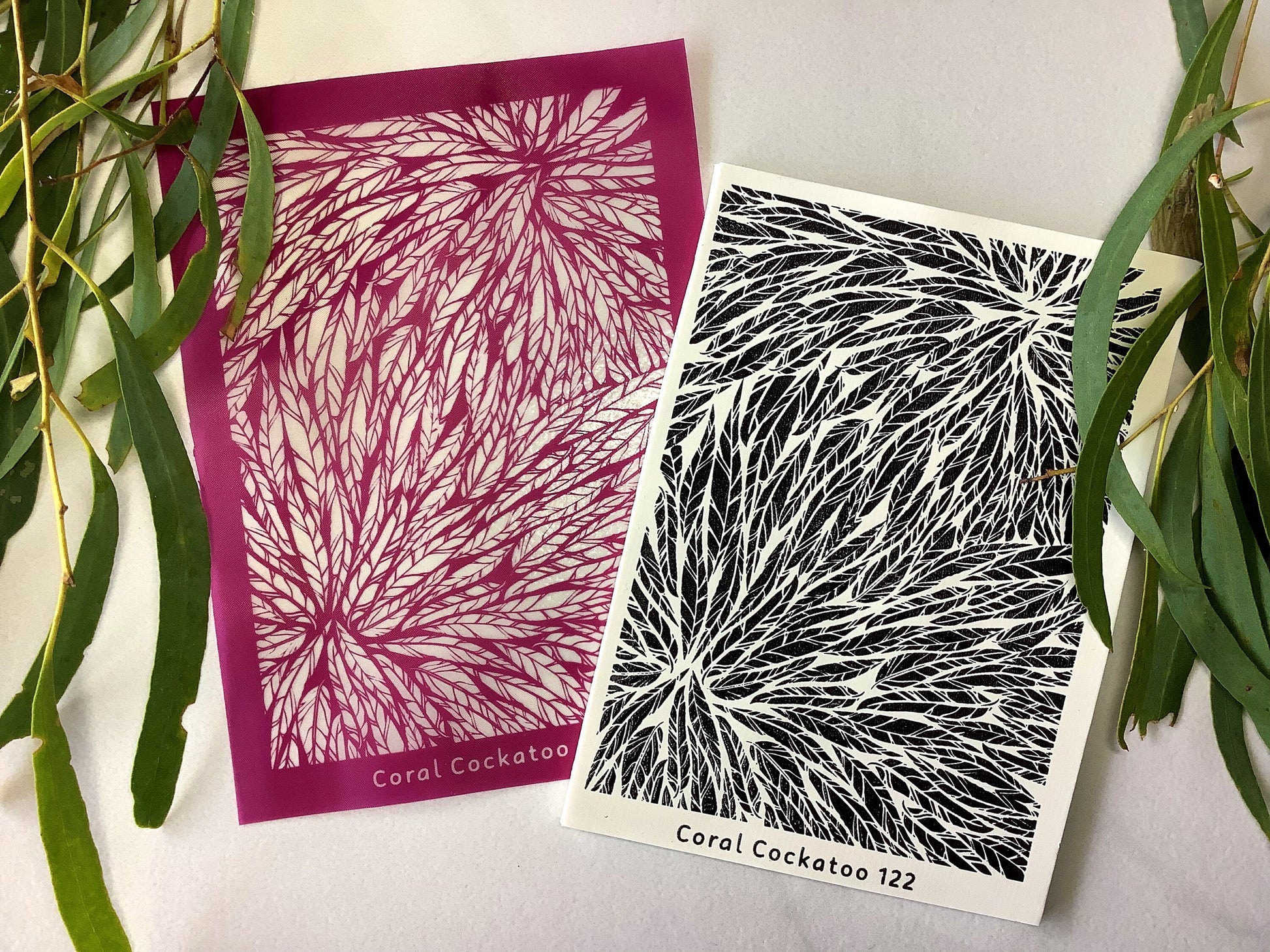 Important Info: Use your unique Coral Cockatoo Silkscreen for anything from earring and jewellery pieces to paper craft and card creations and more! The possibilities are limited only by your imagination and creativity!
