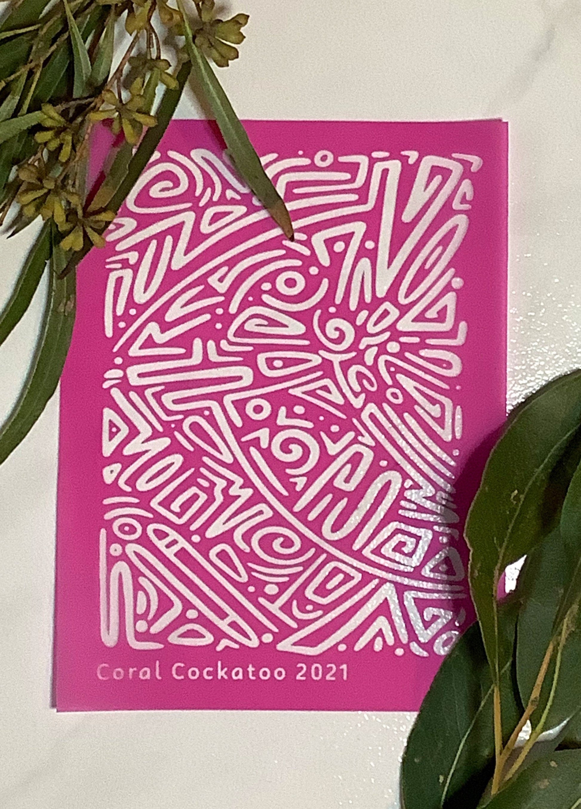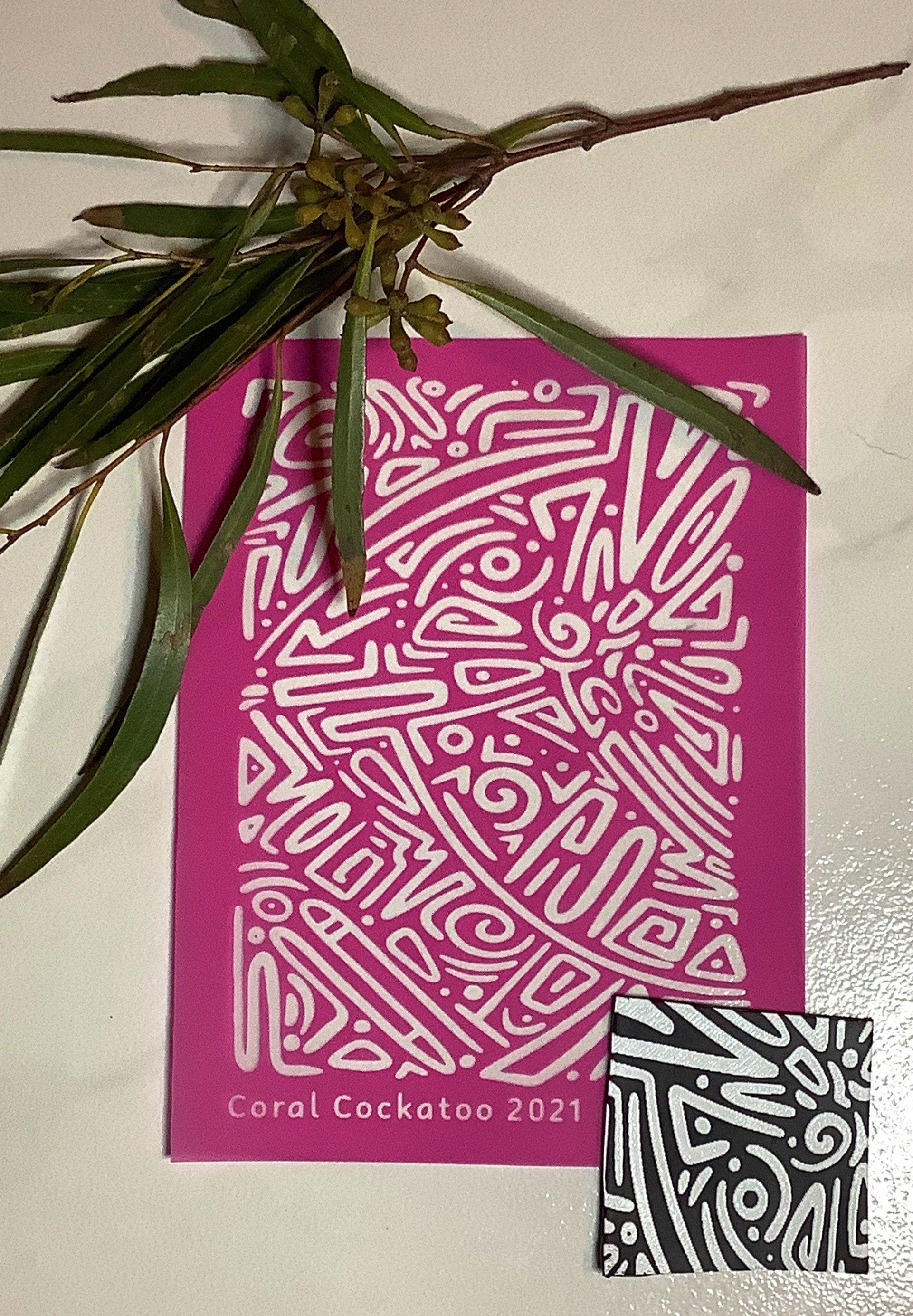 Important Info: Use your unique Coral Cockatoo Silkscreen for anything from earring and jewellery pieces to paper craft and card creations and more! The possibilities are limited only by your imagination and creativity!