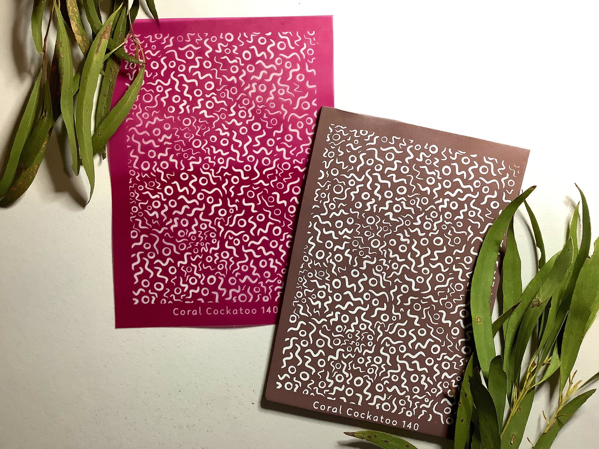Important Info: Use your unique Coral Cockatoo Silkscreen for anything from earring and jewellery pieces to paper craft and card creations and more! The possibilities are limited only by your imagination and creativity!