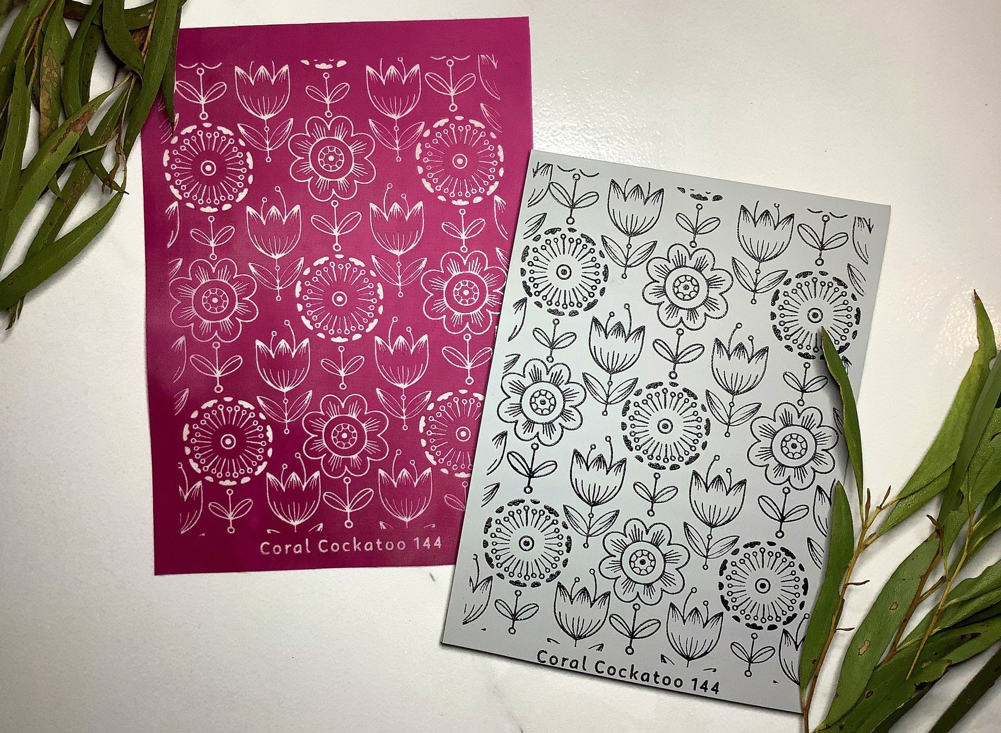 Important Info: Use your unique Coral Cockatoo Silkscreen for anything from earring and jewellery pieces to paper craft and card creations and more! The possibilities are limited only by your imagination and creativity!