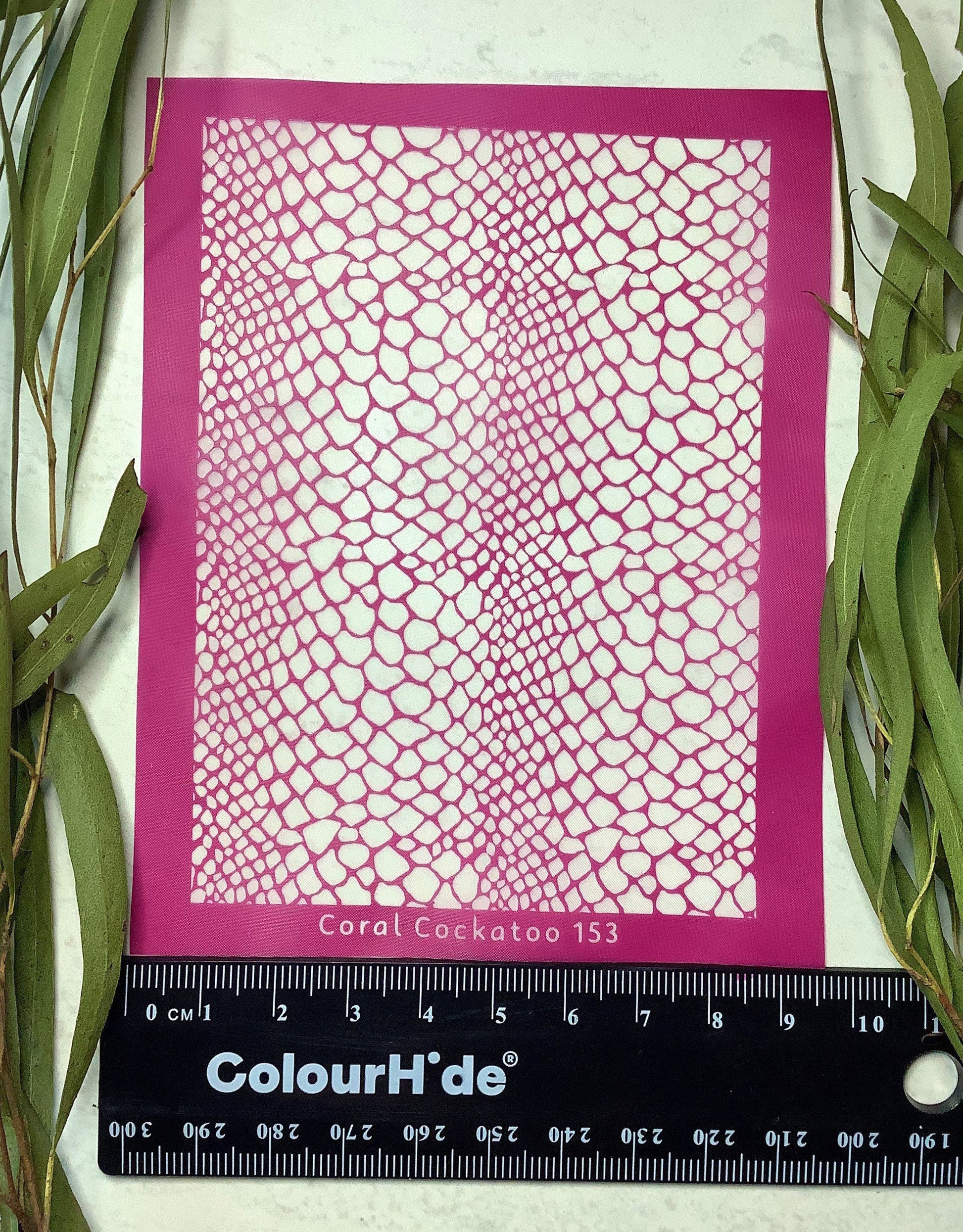 How to use your new Coral Cockatoo Silkscreen: Place the silk screen on top of your polymer clay or other decorative surface, make sure you can read the Coral Cockatoo Logo, it is facing the right way up. Apply your colour in the form of a good quality Artists Acrylic paint, gently swipe the paint across the silkscreen with a squeegee, scraper or old card, hold the squeegee at a 45 degree angle and pull towards you gently, pulling the paint across the silk screen. Once adequately spread through the design, lift up the silk screen by gently starting with the bottom right hand corner.