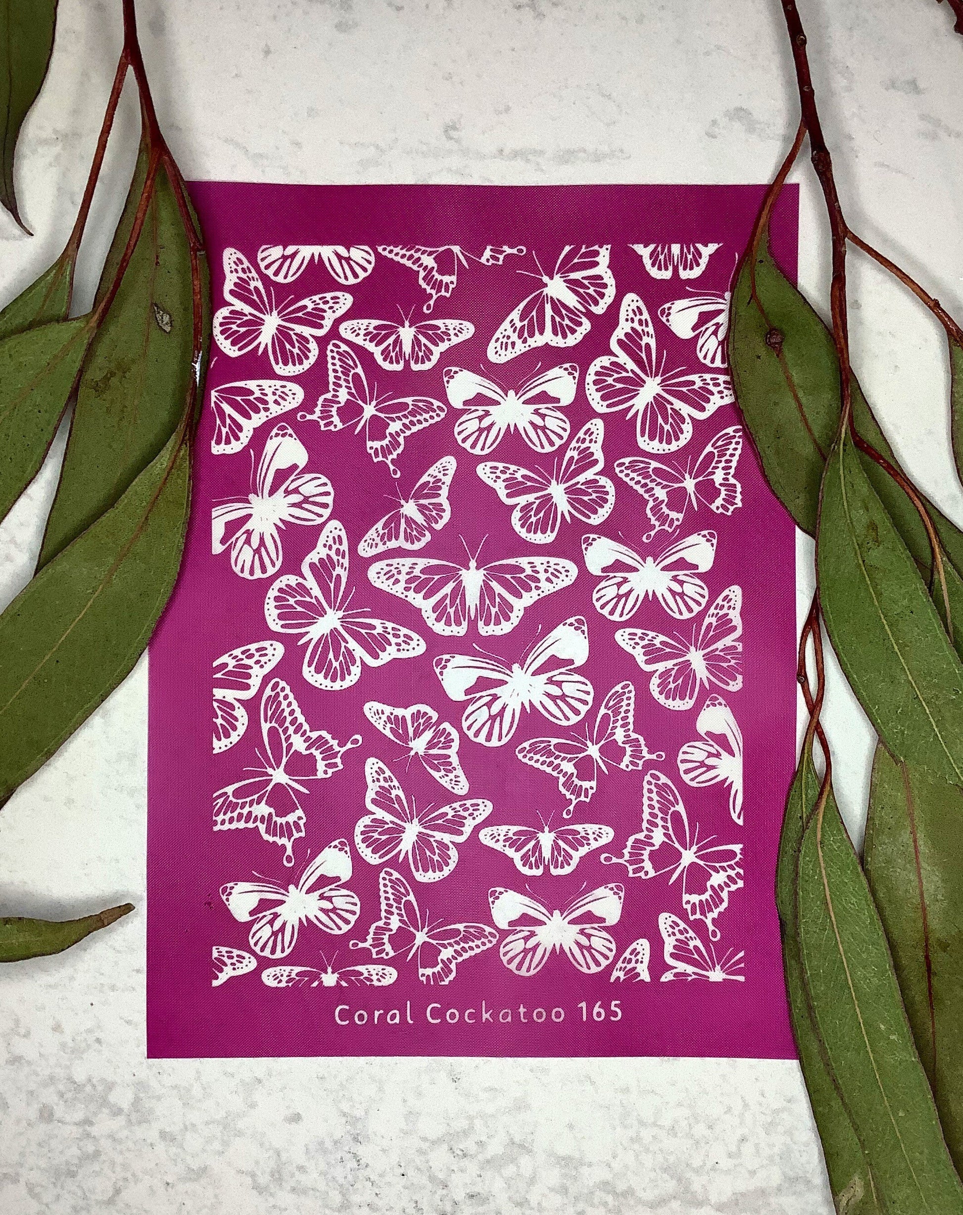 Recommendations: Coral Cockatoo recommends that you use your new Coral Cockatoo Silkscreen with a good quality highly pigmented Artists Acrylic Paint.