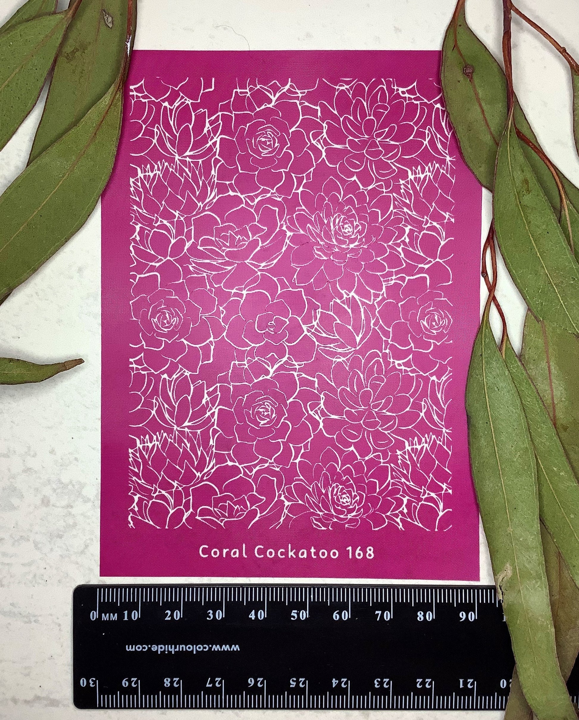 Recommendations: Coral Cockatoo recommends that you use your new Coral Cockatoo Silkscreen with a good quality highly pigmented Artists Acrylic Paint.