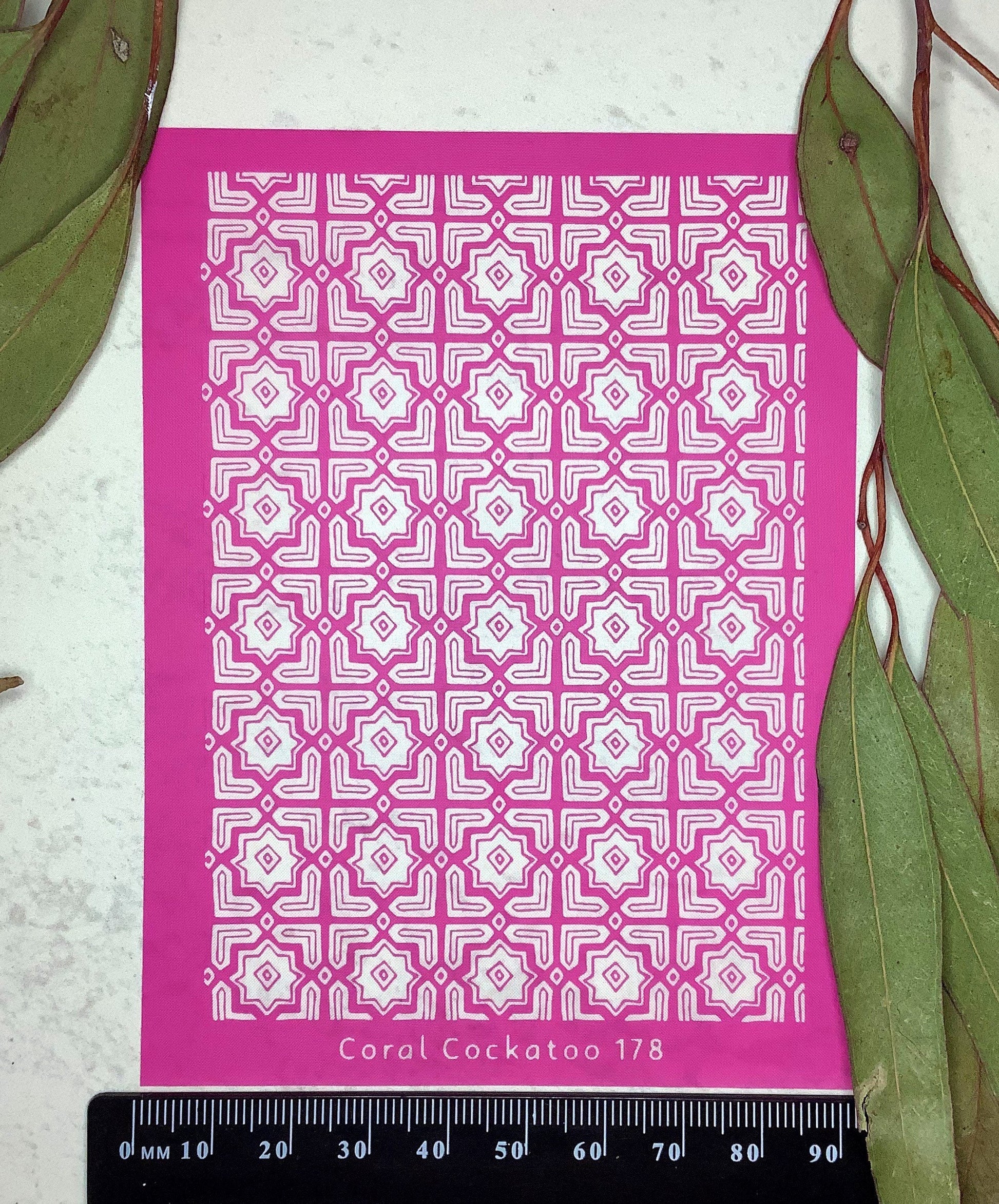 Important Info: Use your unique Coral Cockatoo Silkscreen for anything from earring and jewellery pieces to paper craft and card creations and more! The possibilities are limited only by your imagination and creativity!