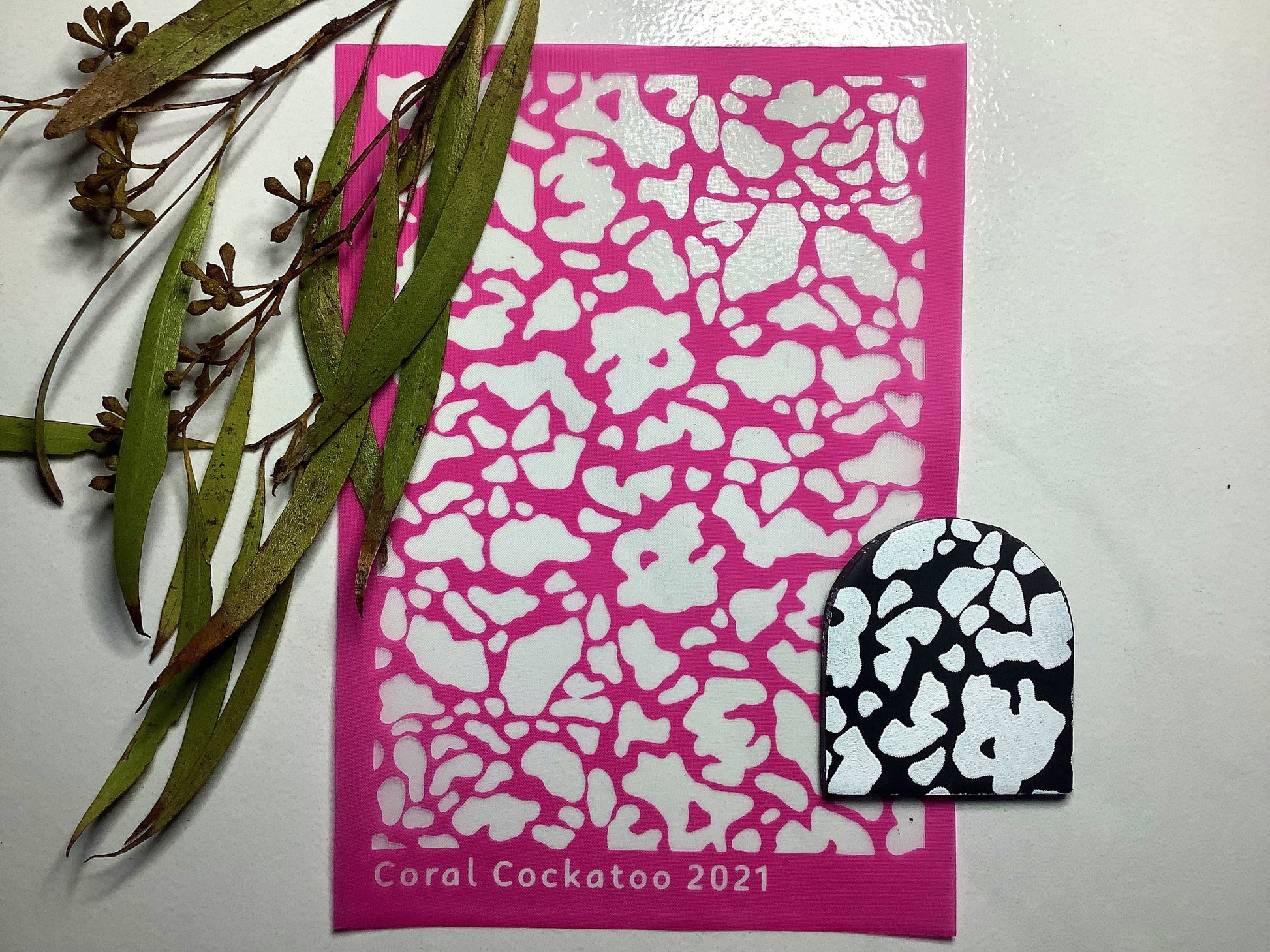 Important Info: Use your unique Coral Cockatoo Silkscreen for anything from earring and jewellery pieces to paper craft and card creations and more! The possibilities are limited only by your imagination and creativity!