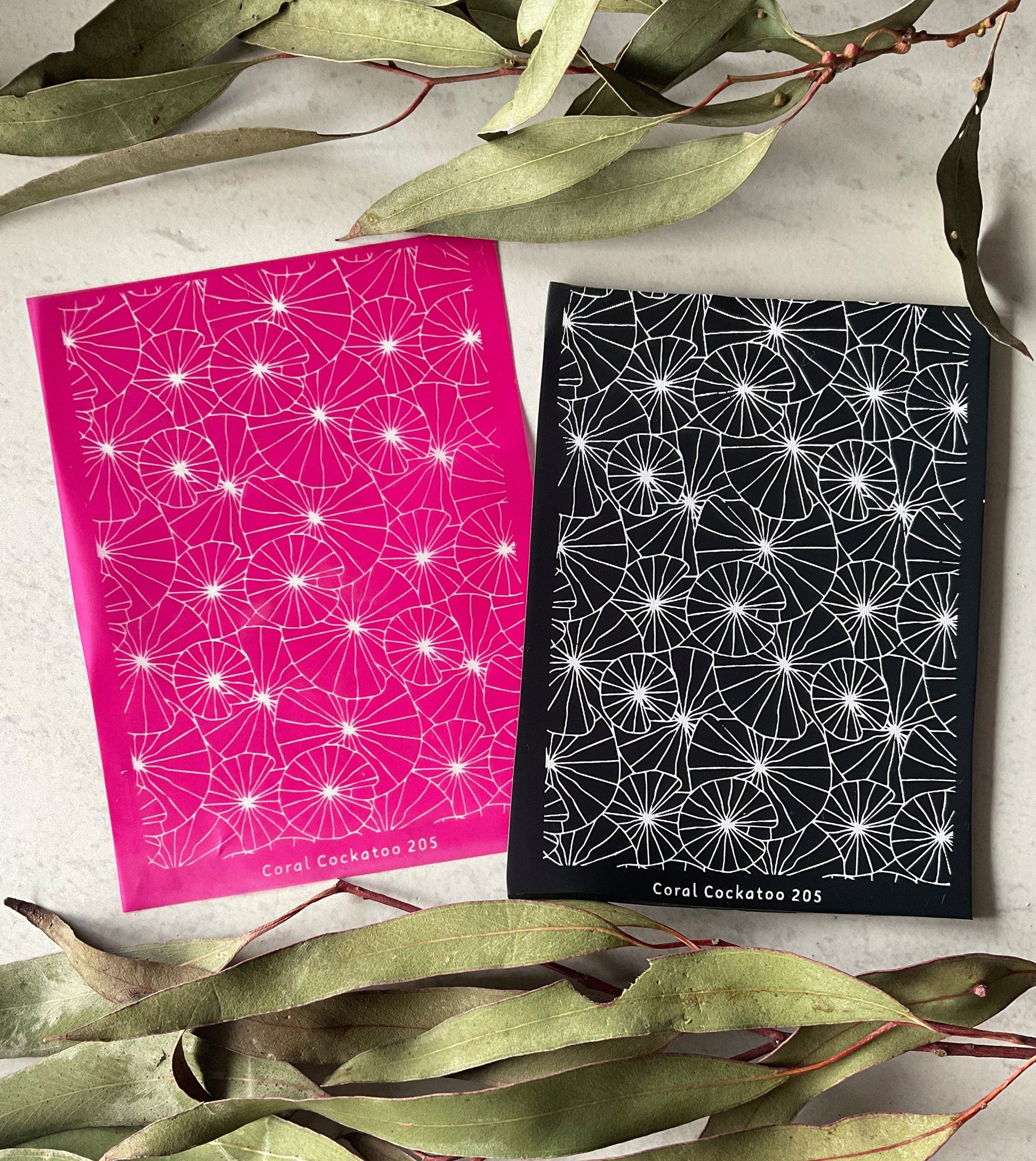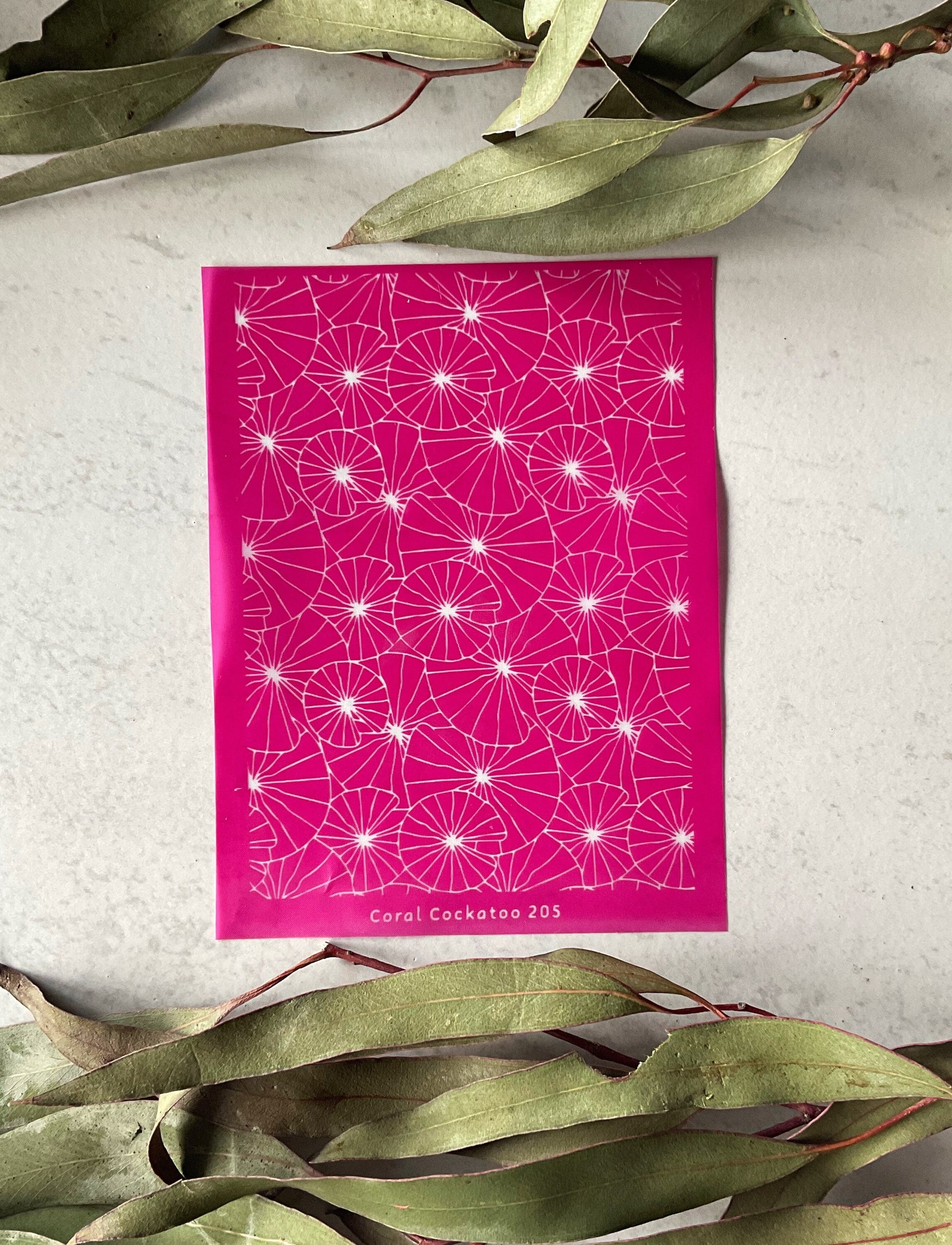 Important Info: Use your unique Coral Cockatoo Silkscreen for anything from earring and jewellery pieces to paper craft and card creations and more! The possibilities are limited only by your imagination and creativity!