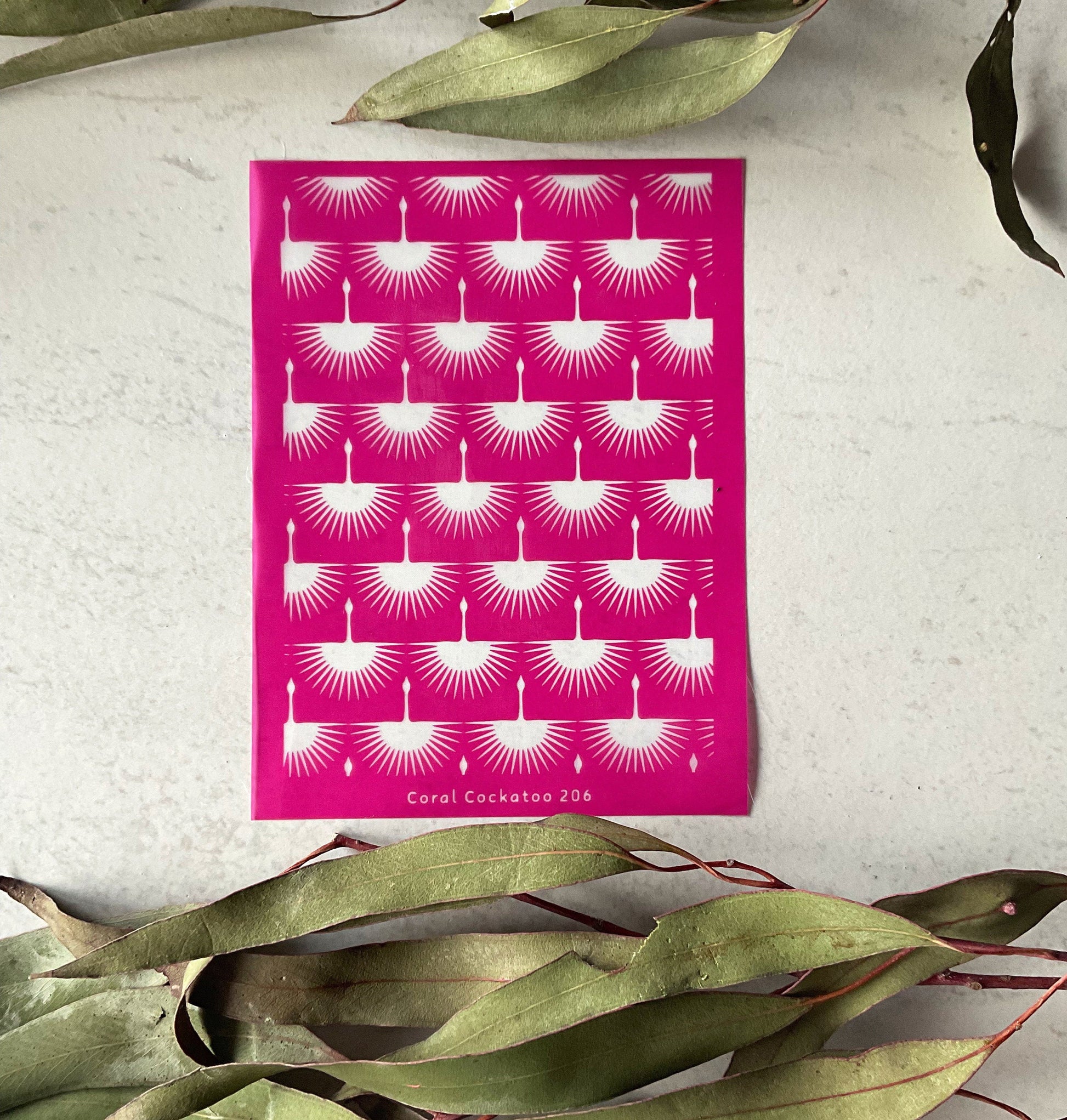 Important Info: Use your unique Coral Cockatoo Silkscreen for anything from earring and jewellery pieces to paper craft and card creations and more! The possibilities are limited only by your imagination and creativity!