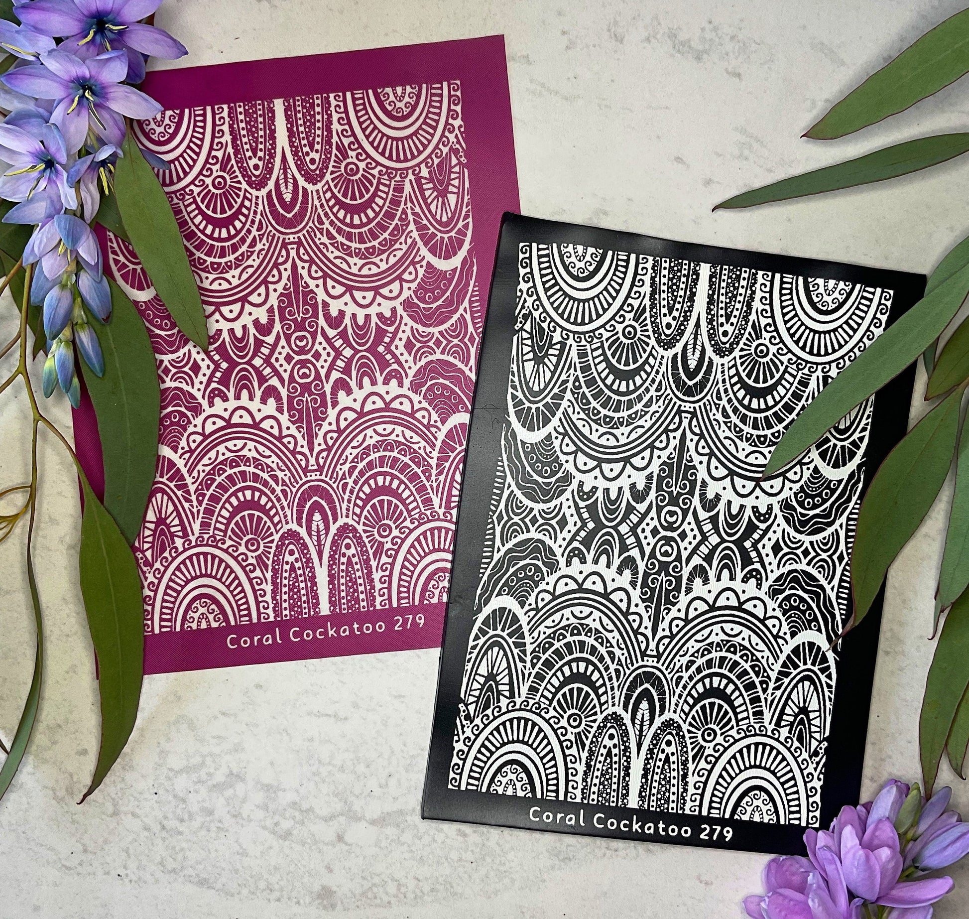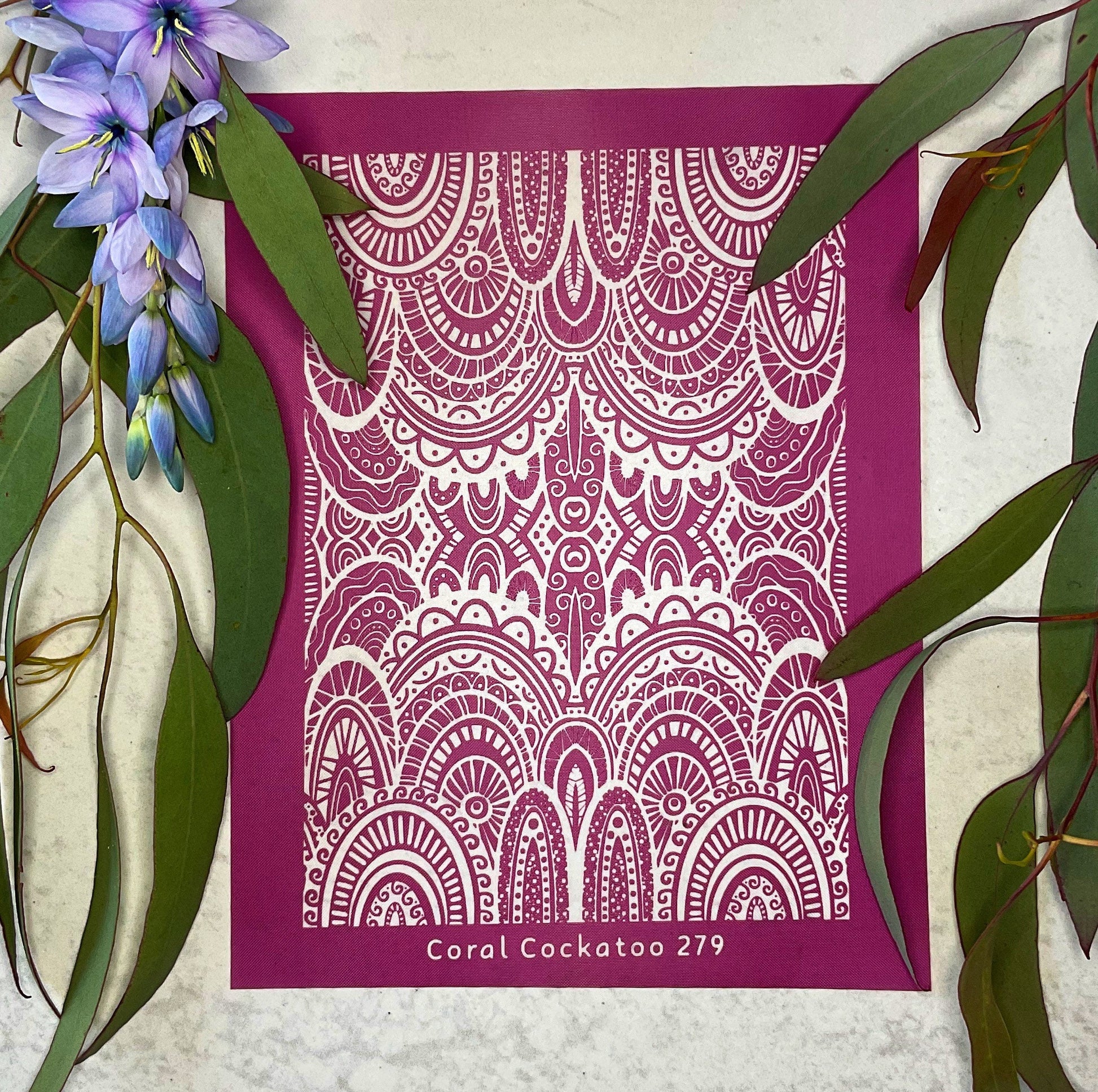 Important Info: Use your unique Coral Cockatoo Silkscreen for anything from earring and jewellery pieces to paper craft and card creations and more! The possibilities are limited only by your imagination and creativity!