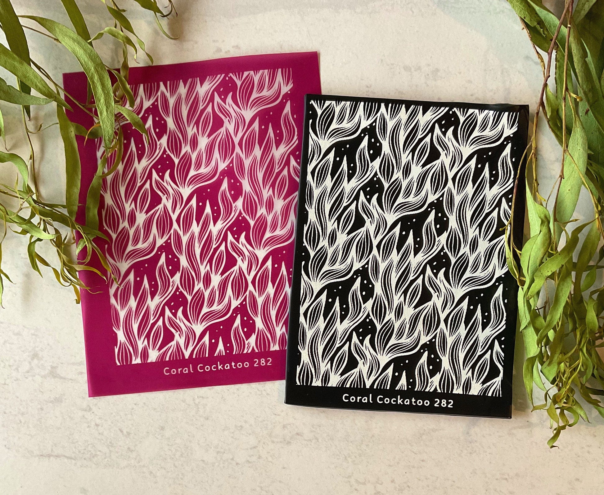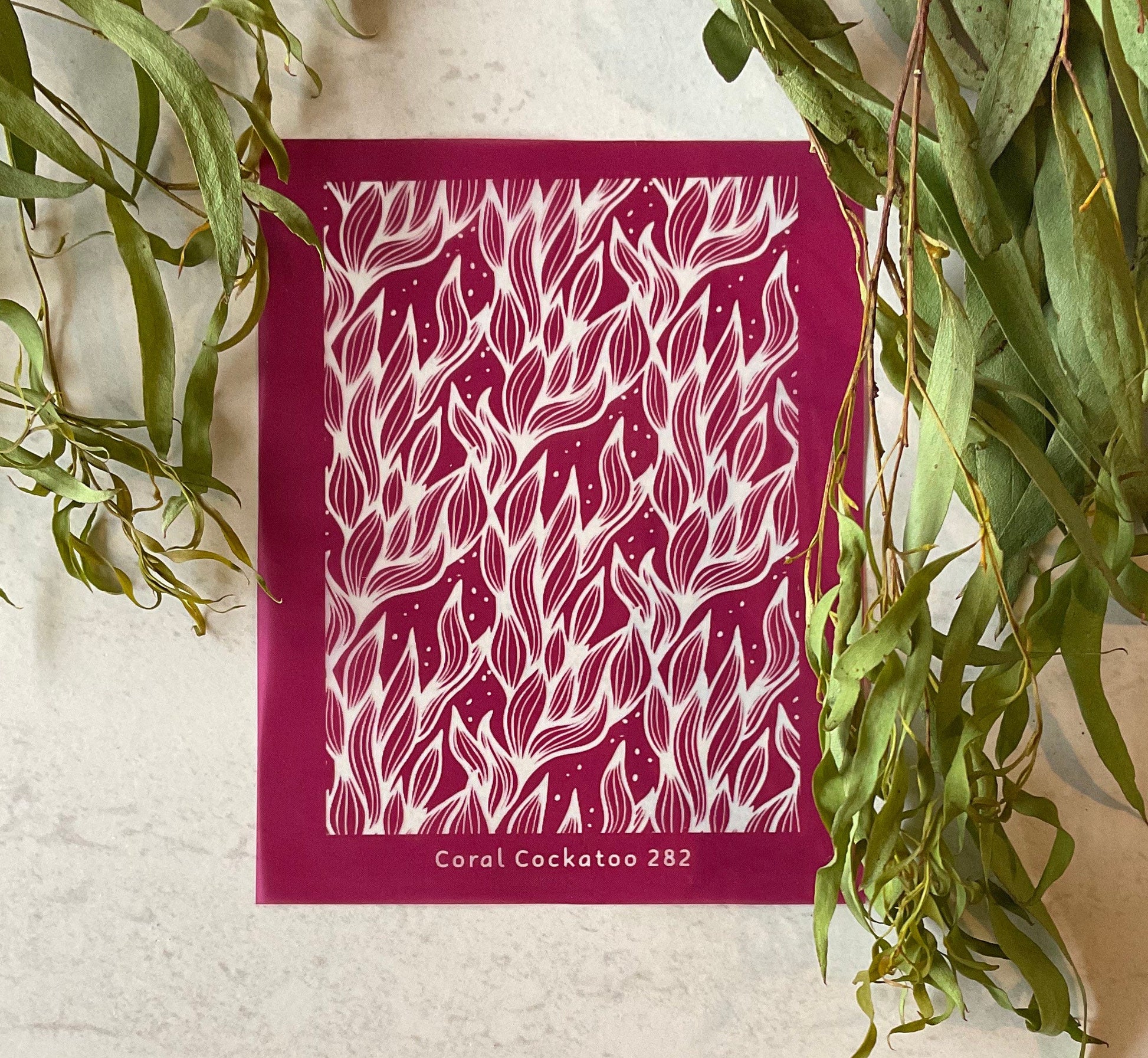 Important Info: Use your unique Coral Cockatoo Silkscreen for anything from earring and jewellery pieces to paper craft and card creations and more! The possibilities are limited only by your imagination and creativity!