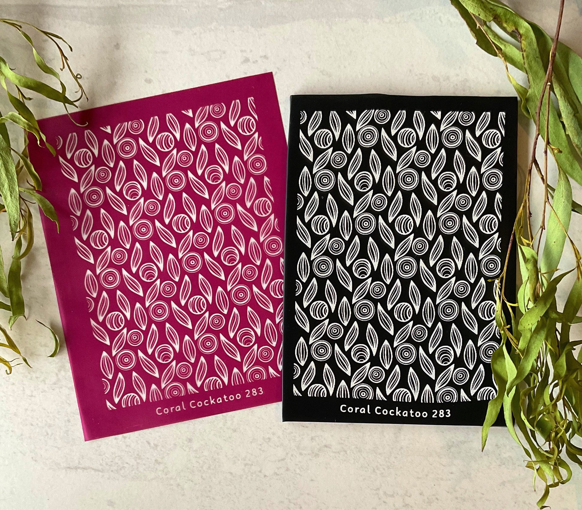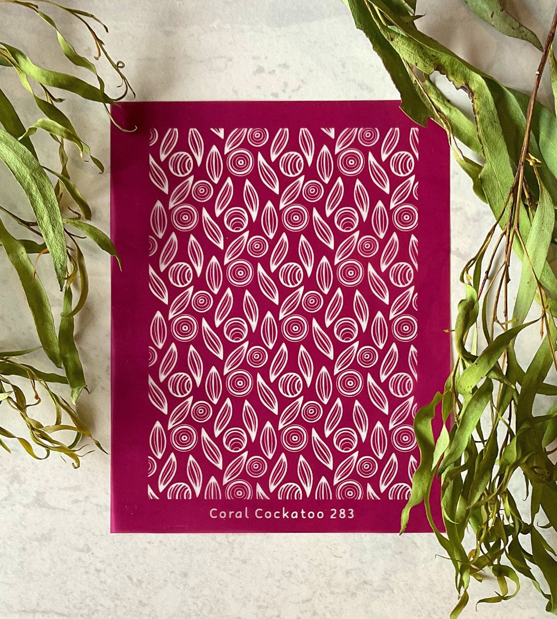 Important Info: Use your unique Coral Cockatoo Silkscreen for anything from earring and jewellery pieces to paper craft and card creations and more! The possibilities are limited only by your imagination and creativity!