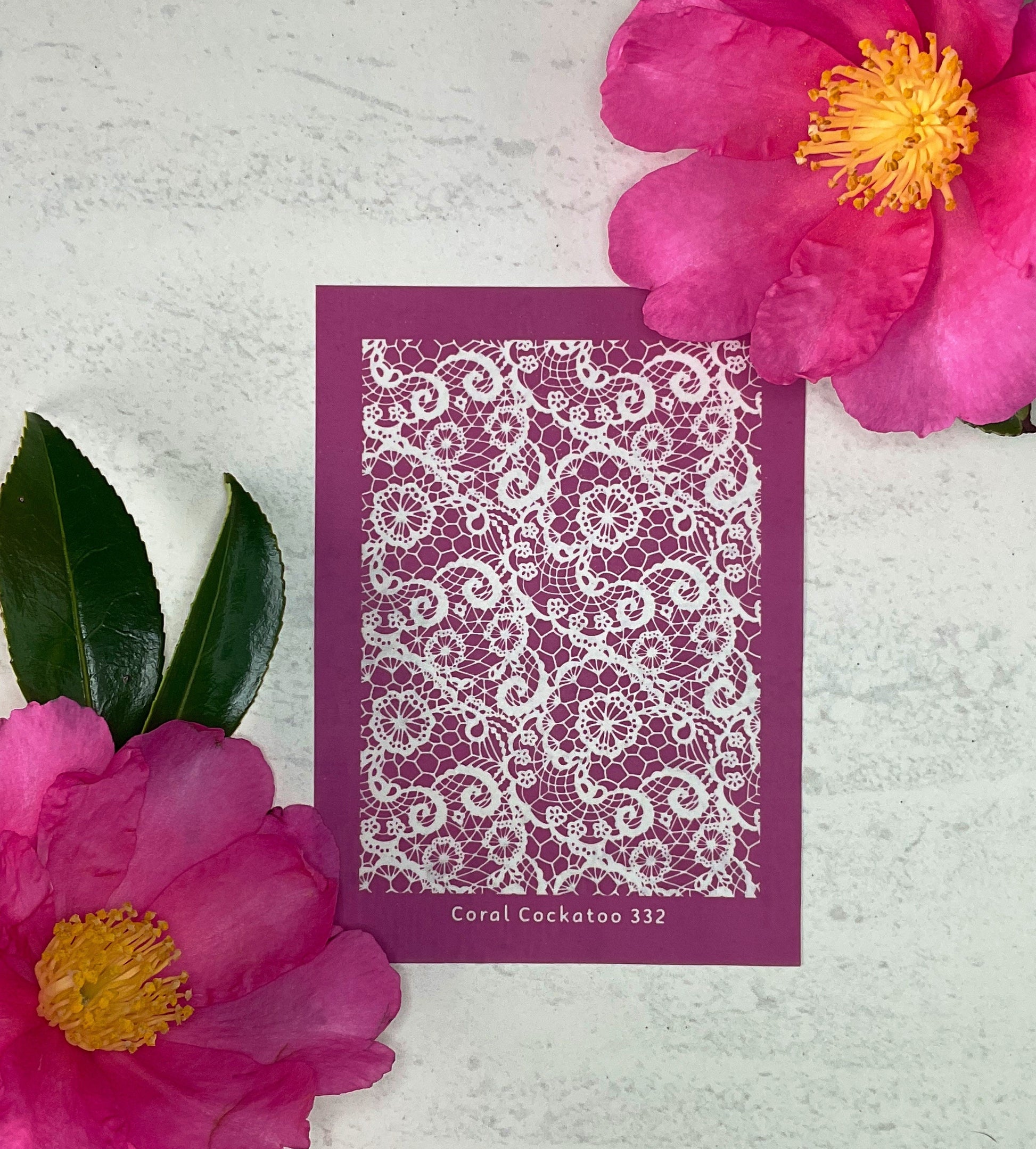 Important Info: Use your unique Coral Cockatoo Silkscreen for anything from earring and jewellery pieces to paper craft and card creations and more! The possibilities are limited only by your imagination and creativity!