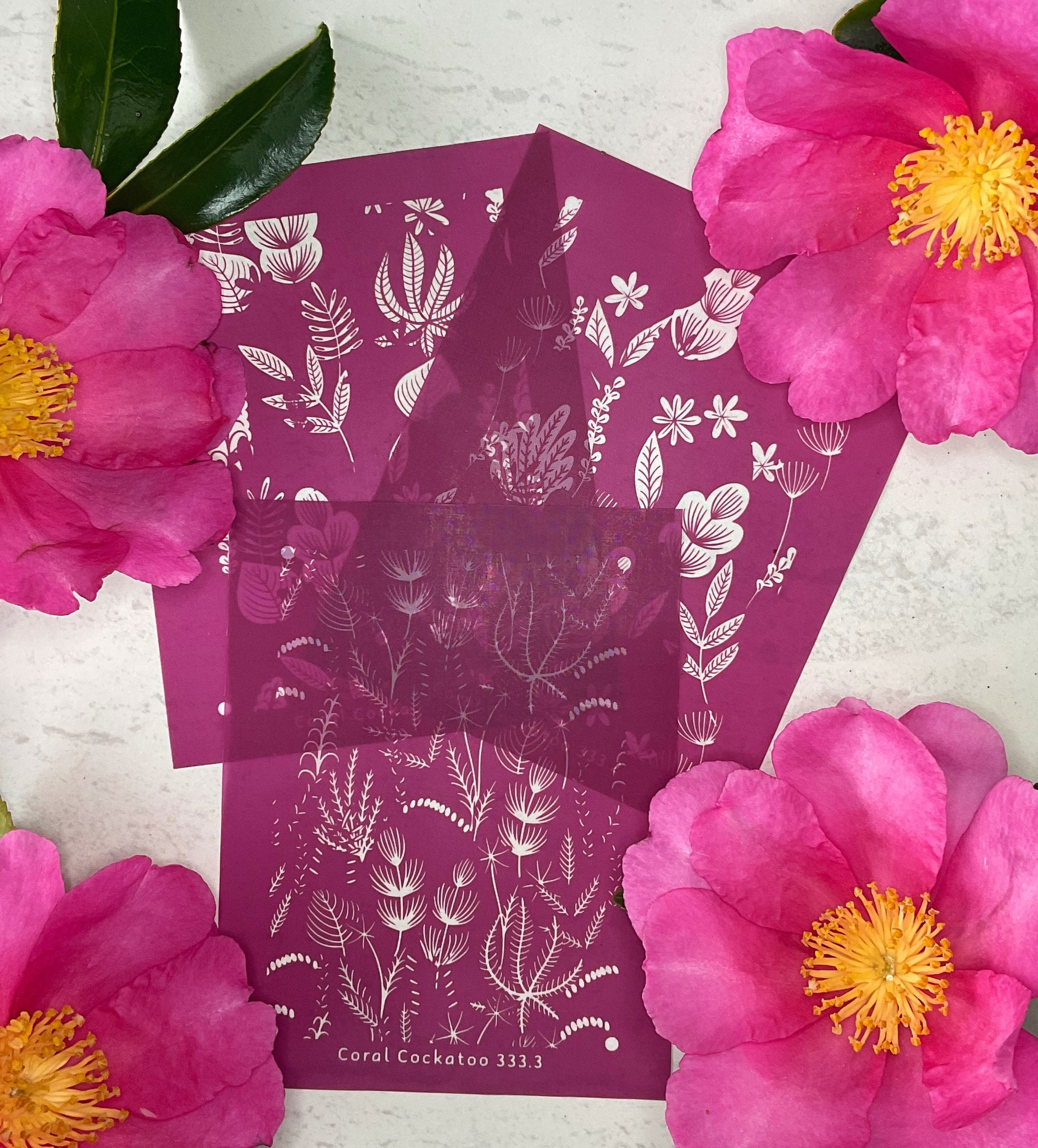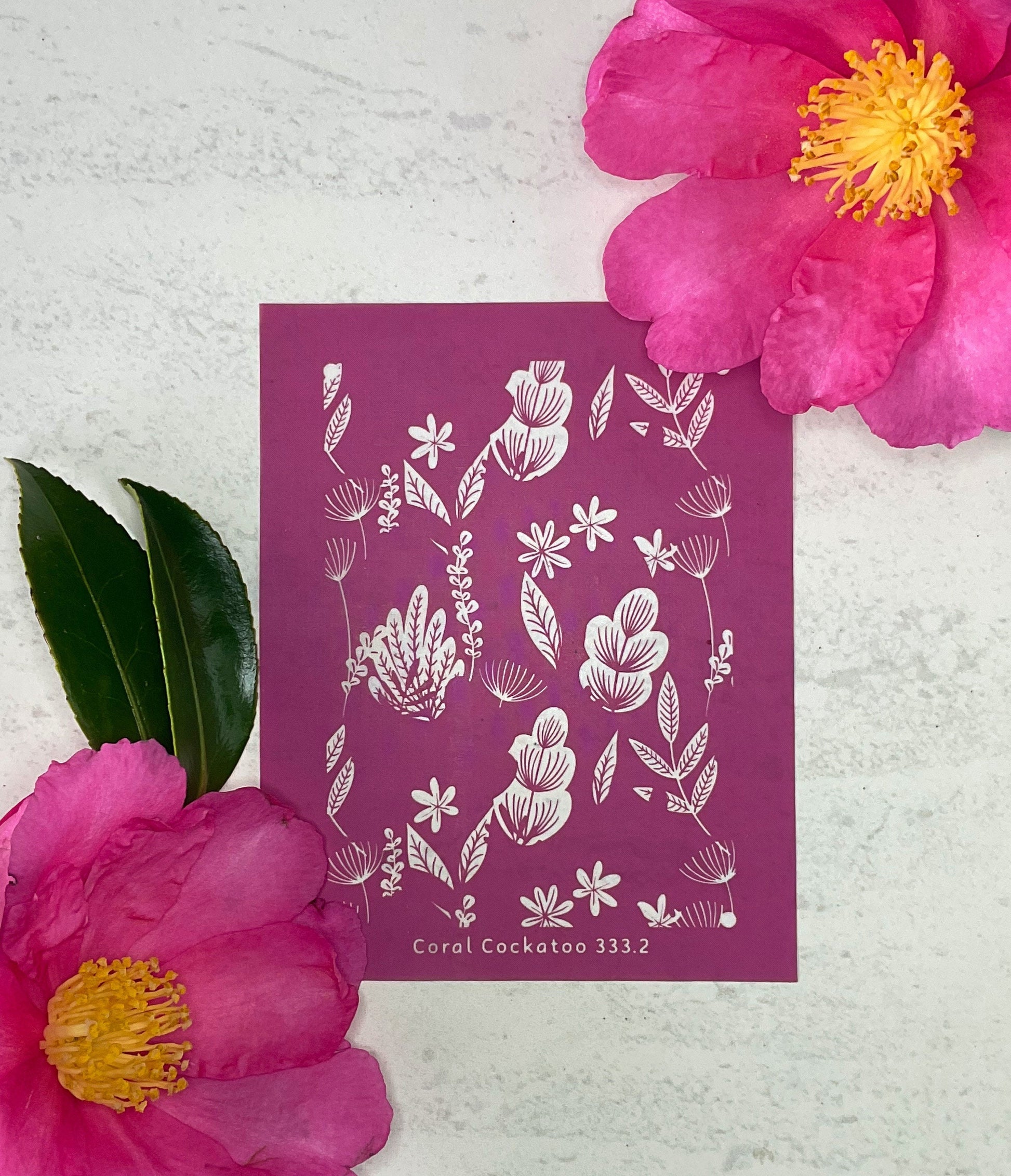 Important Info: Use your unique Coral Cockatoo Silkscreen for anything from earring and jewellery pieces to paper craft and card creations and more! The possibilities are limited only by your imagination and creativity!