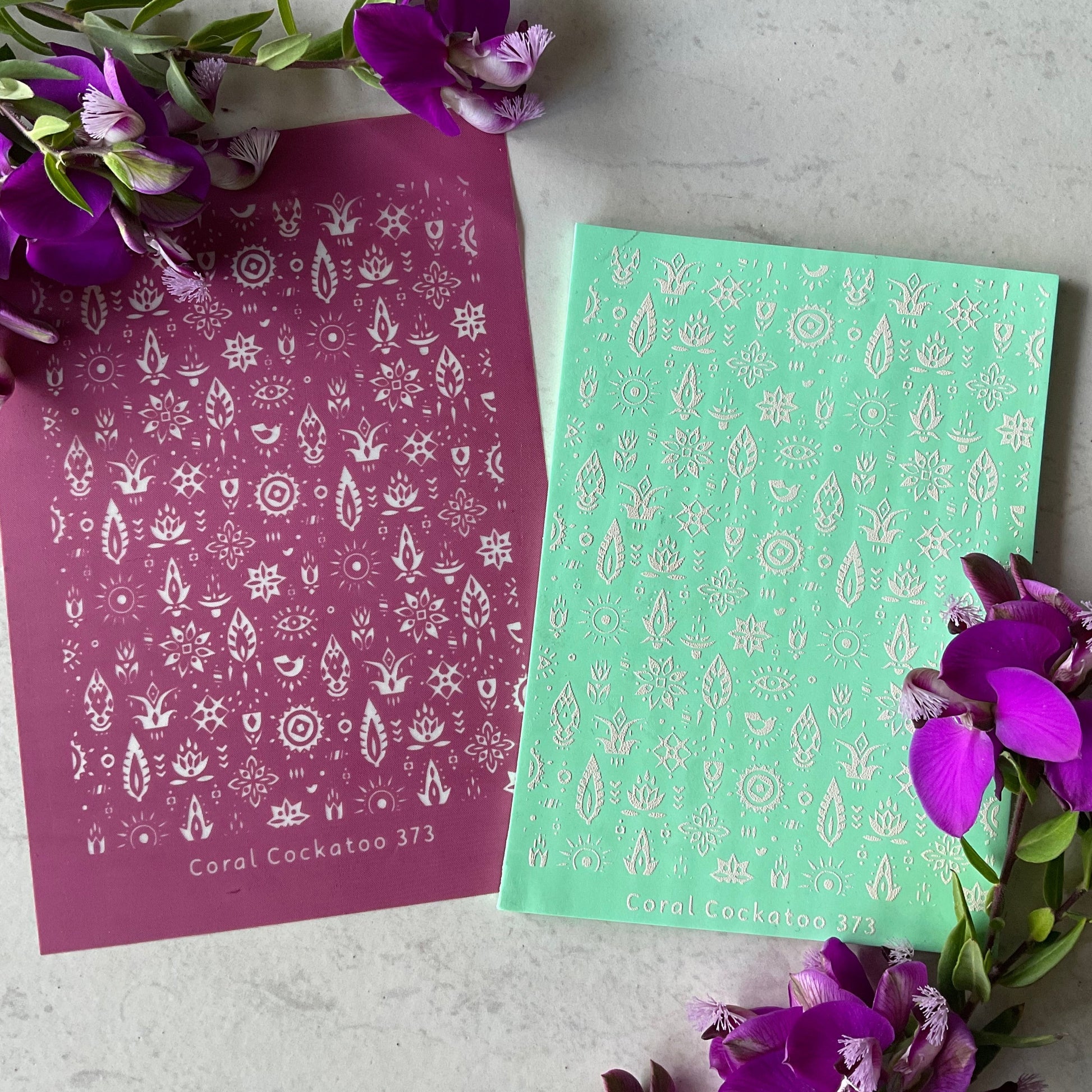 Important Info: Use your unique Coral Cockatoo Silkscreen for anything from earring and jewellery pieces to paper craft and card creations and more! The possibilities are limited only by your imagination and creativity!