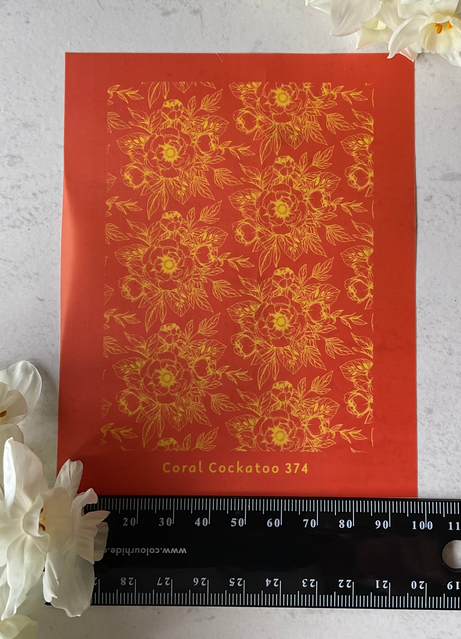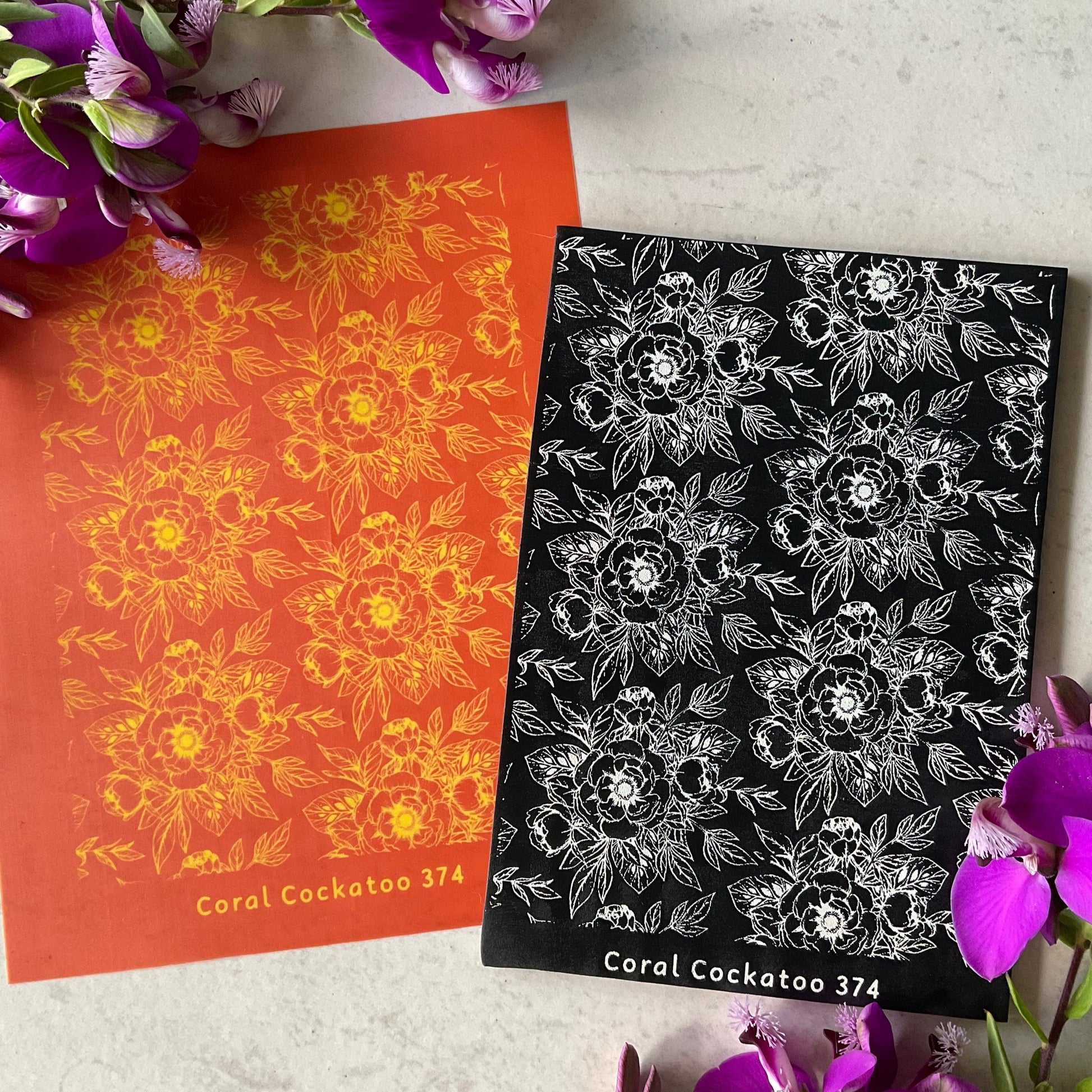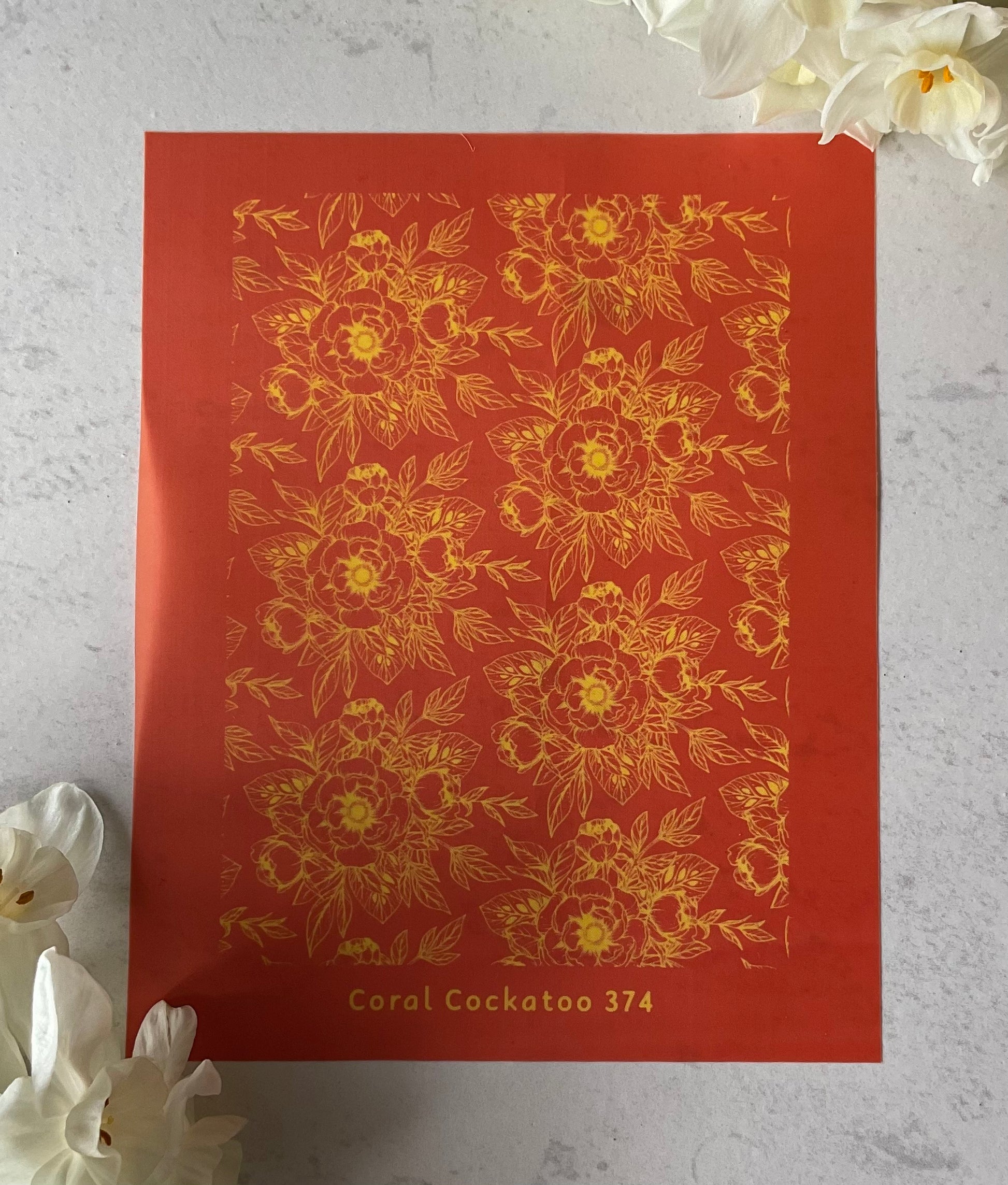 Important Info: Use your unique Coral Cockatoo Silkscreen for anything from earring and jewellery pieces to paper craft and card creations and more! The possibilities are limited only by your imagination and creativity!