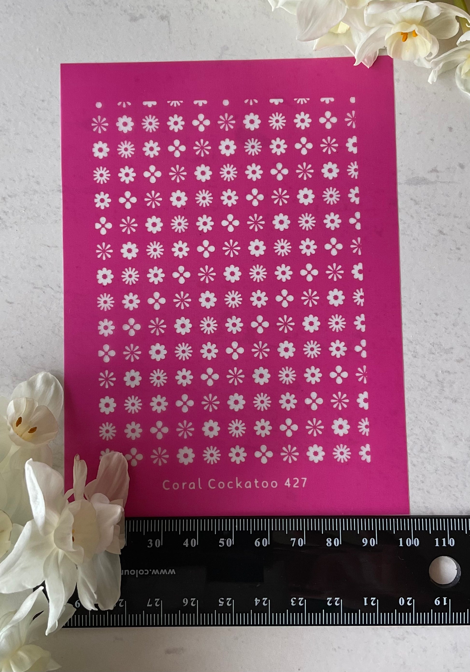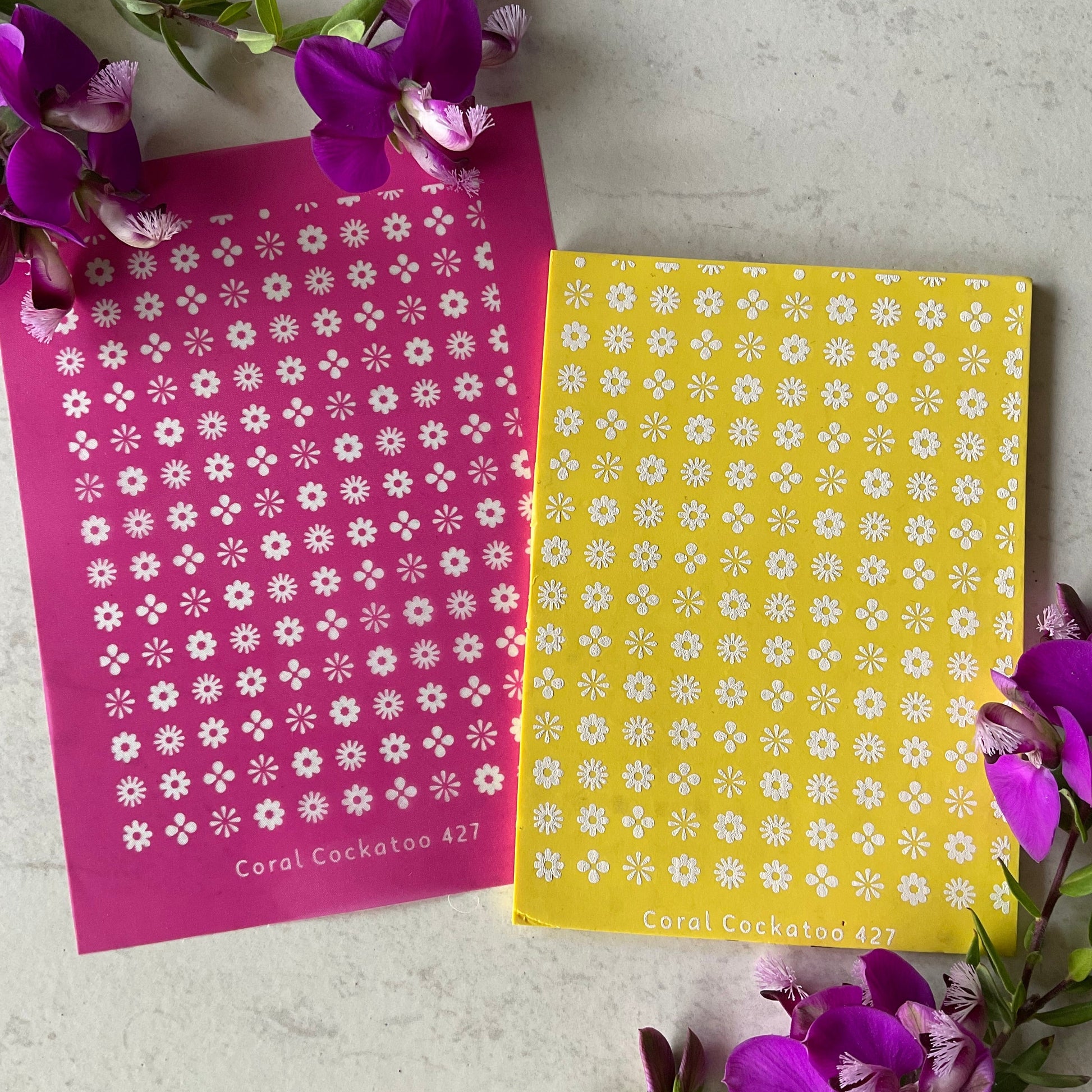 How to use your new Coral Cockatoo Silkscreen: Place the silk screen on top of your polymer clay or other decorative surface, make sure you can read the Coral Cockatoo Logo, it is facing the right way up. Apply your colour in the form of a good quality Artists Acrylic paint, gently swipe the paint across the silkscreen with a squeegee, scraper or old card, hold the squeegee at a 45 degree angle and pull towards you gently, pulling the paint across the silk screen. Once adequately spread through the design, lift up the silk screen by gently starting with the bottom right hand corner.