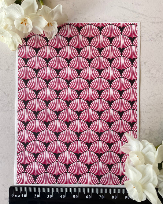 Art Deco Fan Scallops Only in Ravishing Raspberry Collab Colour Water Soluble Transfer - Me Oh My Graphics x Coral Cockatoo 32
