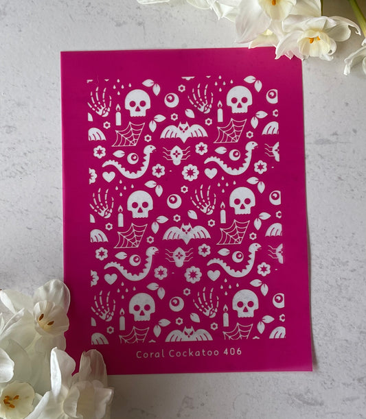 Creepy Halloween Spiderwebs, Ghosties & Skulls Silkscreen 408