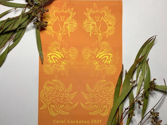 Platypus & Cockatoos Earring Pairs Silkscreen 014