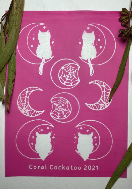 Owl Pussycat and Spiderweb Moons Silkscreen 041