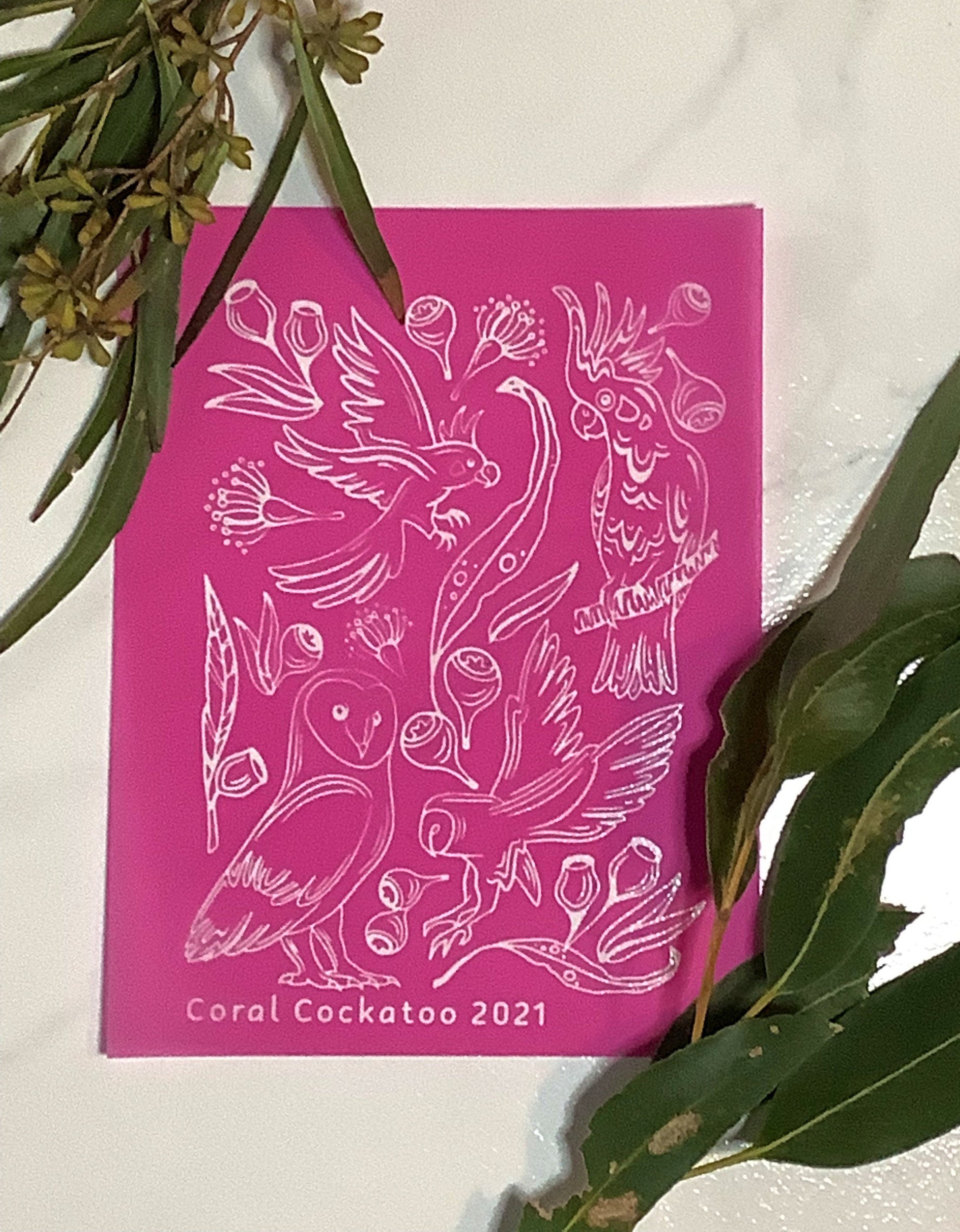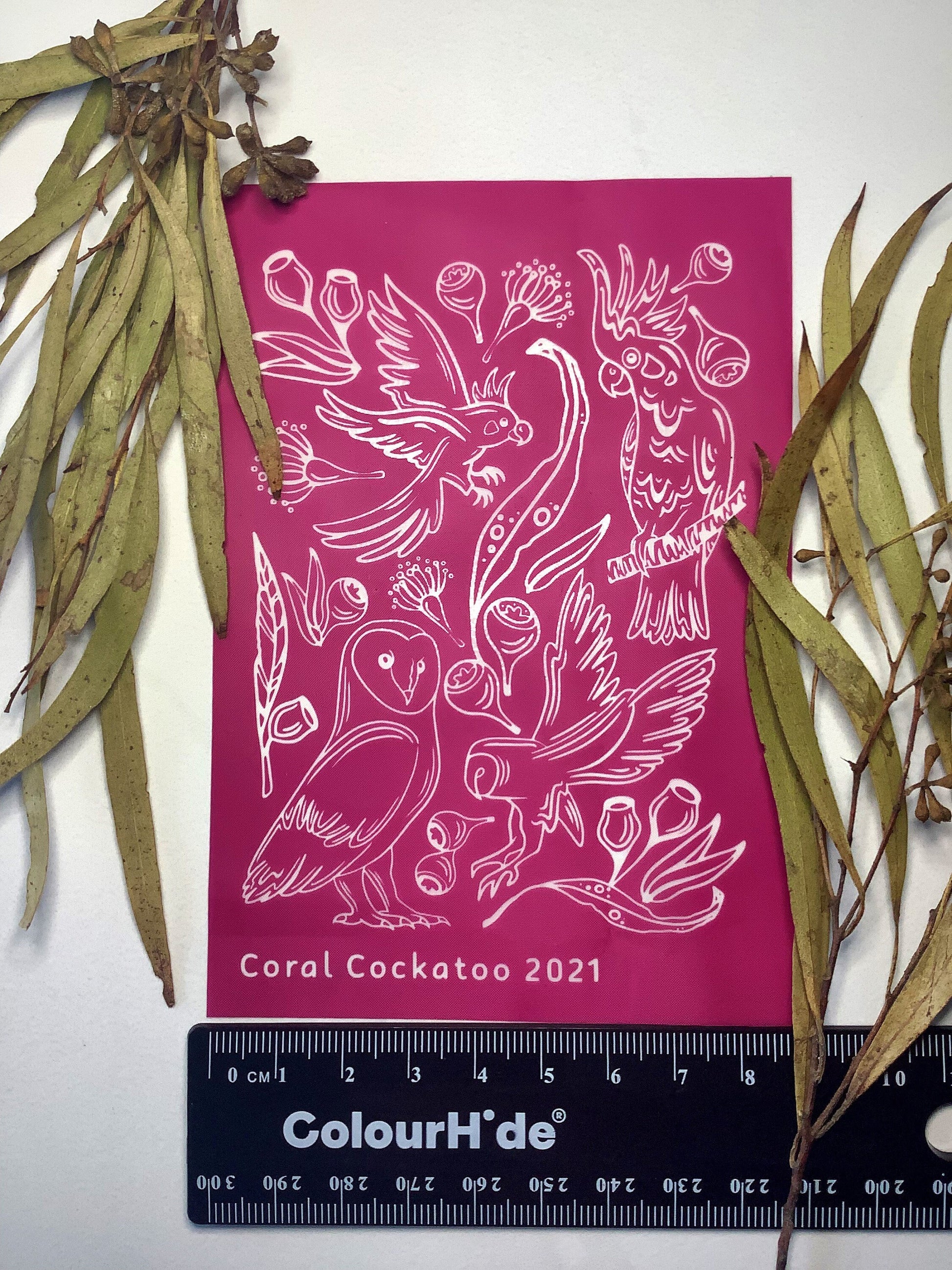 Important Info: Use your unique Coral Cockatoo Silkscreen for anything from earring and jewellery pieces to paper craft and card creations and more! The possibilities are limited only by your imagination and creativity!