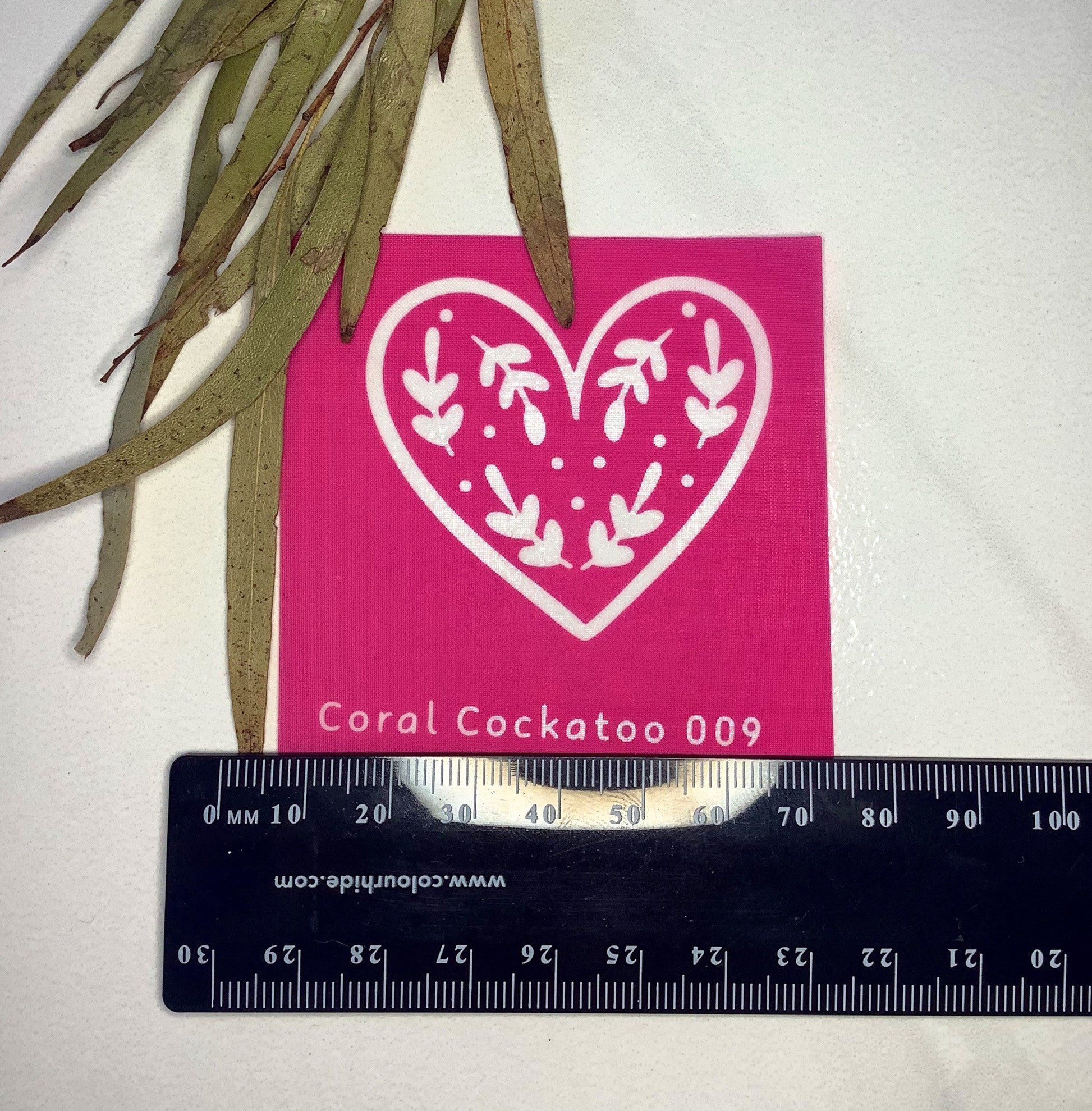 Important Info: Use your unique Coral Cockatoo Silkscreen for anything from Pottery and Ceramics to earring and jewellery pieces to paper craft and card creations and more! The possibilities are limited only by your imagination and creativity!