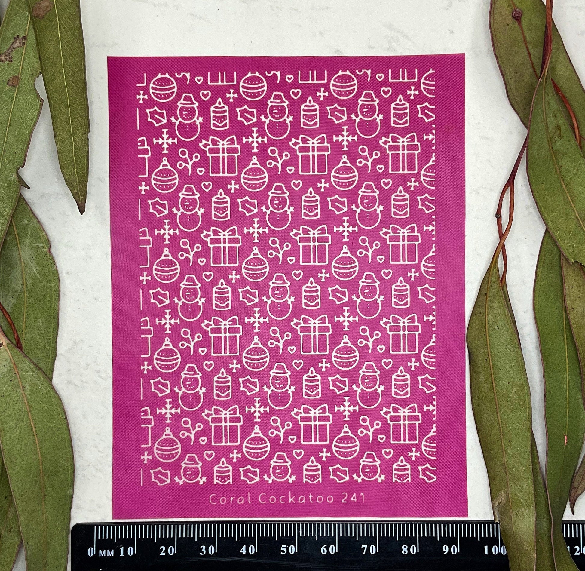 How to use your new Coral Cockatoo Silkscreen: Place the silk screen on top of your polymer clay or other decorative surface, make sure you can read the Coral Cockatoo Logo, it is facing the right way up. Apply your colour in the form of a good quality Artists Acrylic paint, gently swipe the paint across the silkscreen with a squeegee, scraper or old card, hold the squeegee at a 45 degree angle and pull towards you gently, pulling the paint across the silk screen. Once adequately spread through the design, lift up the silk screen by gently starting with the bottom right hand corner.