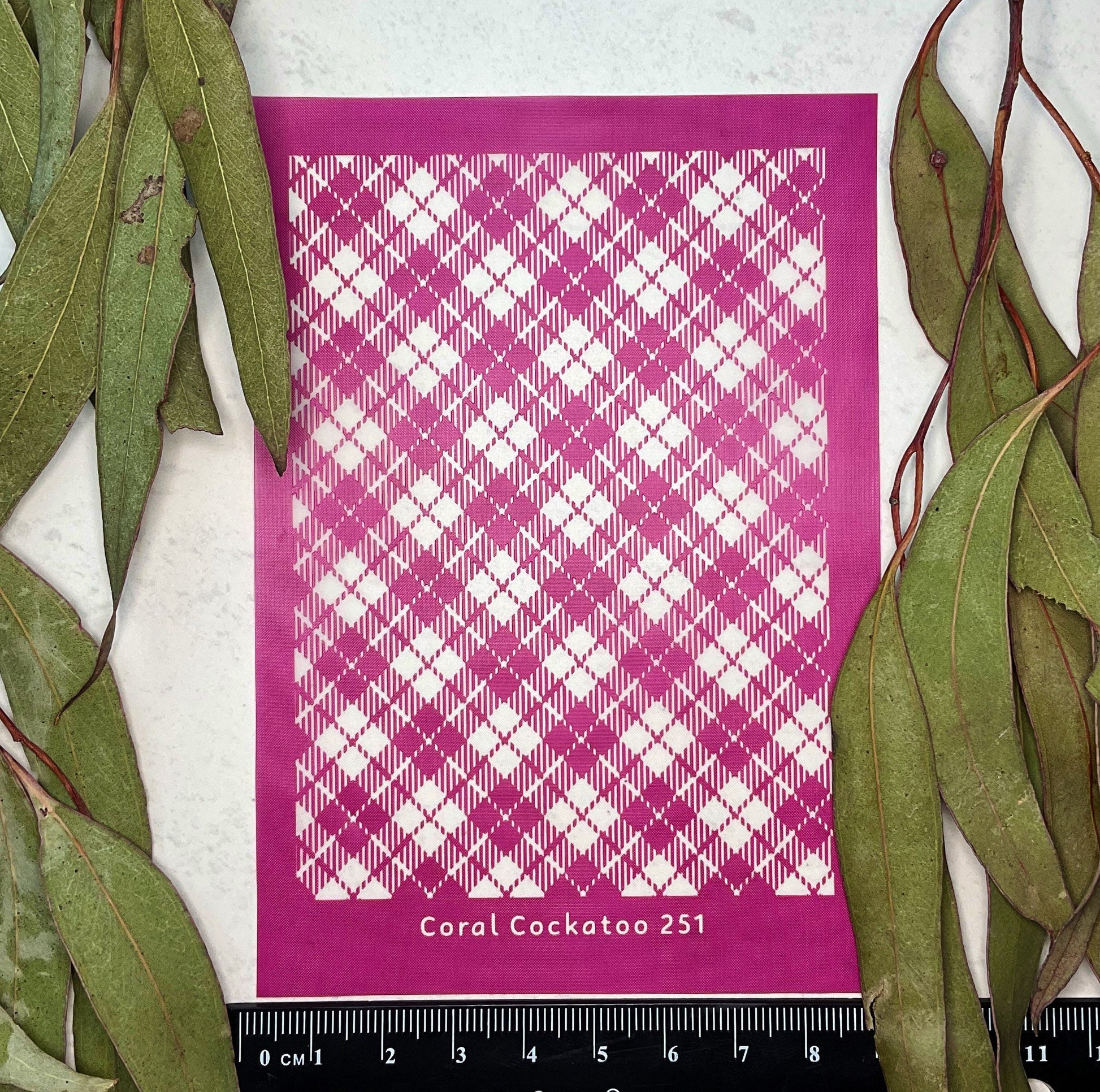How to use your new Coral Cockatoo Silkscreen: Place the silk screen on top of your polymer clay or other decorative surface, make sure you can read the Coral Cockatoo Logo, it is facing the right way up. Apply your colour in the form of a good quality Artists Acrylic paint, gently swipe the paint across the silkscreen with a squeegee, scraper or old card, hold the squeegee at a 45 degree angle and pull towards you gently, pulling the paint across the silk screen. Once adequately spread through the design, lift up the silk screen by gently starting with the bottom right hand corner.