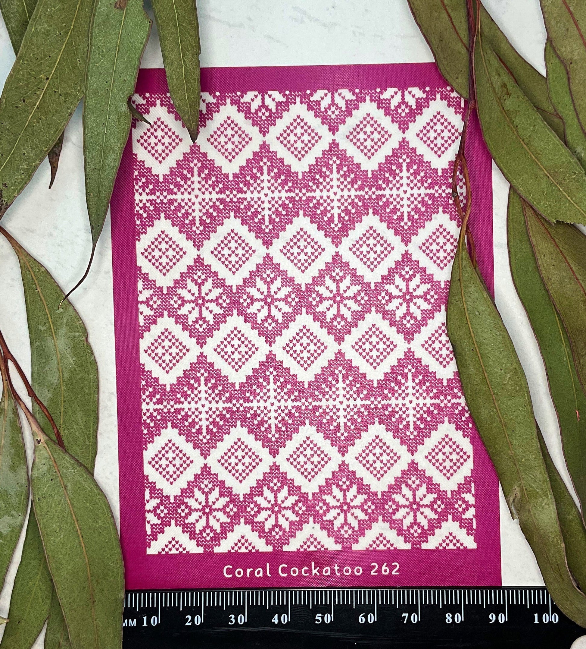Recommendations: Coral Cockatoo recommends that you use your new Coral Cockatoo Silkscreen with a good quality highly pigmented Artists Acrylic Paint.