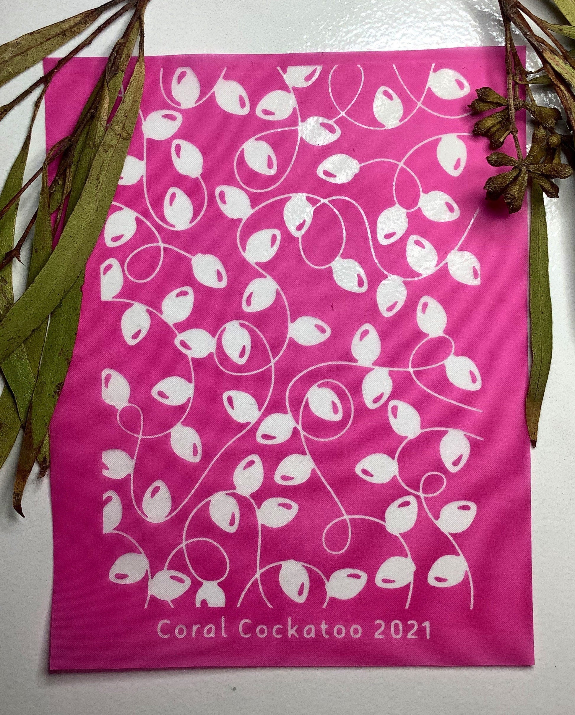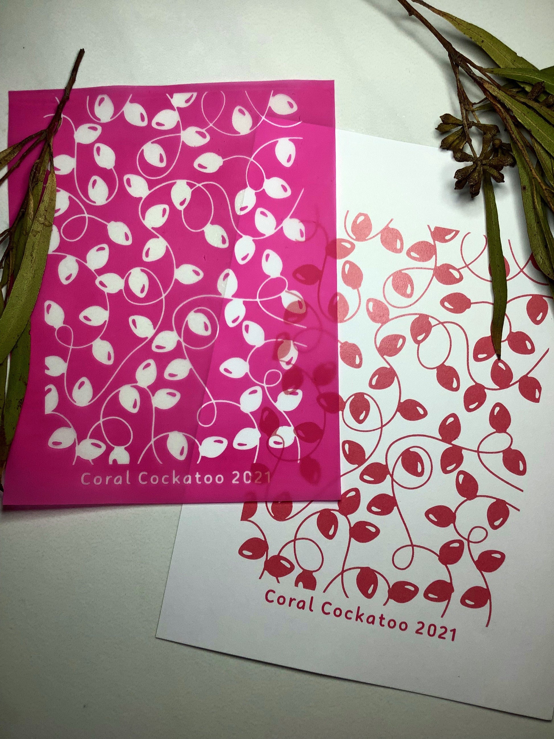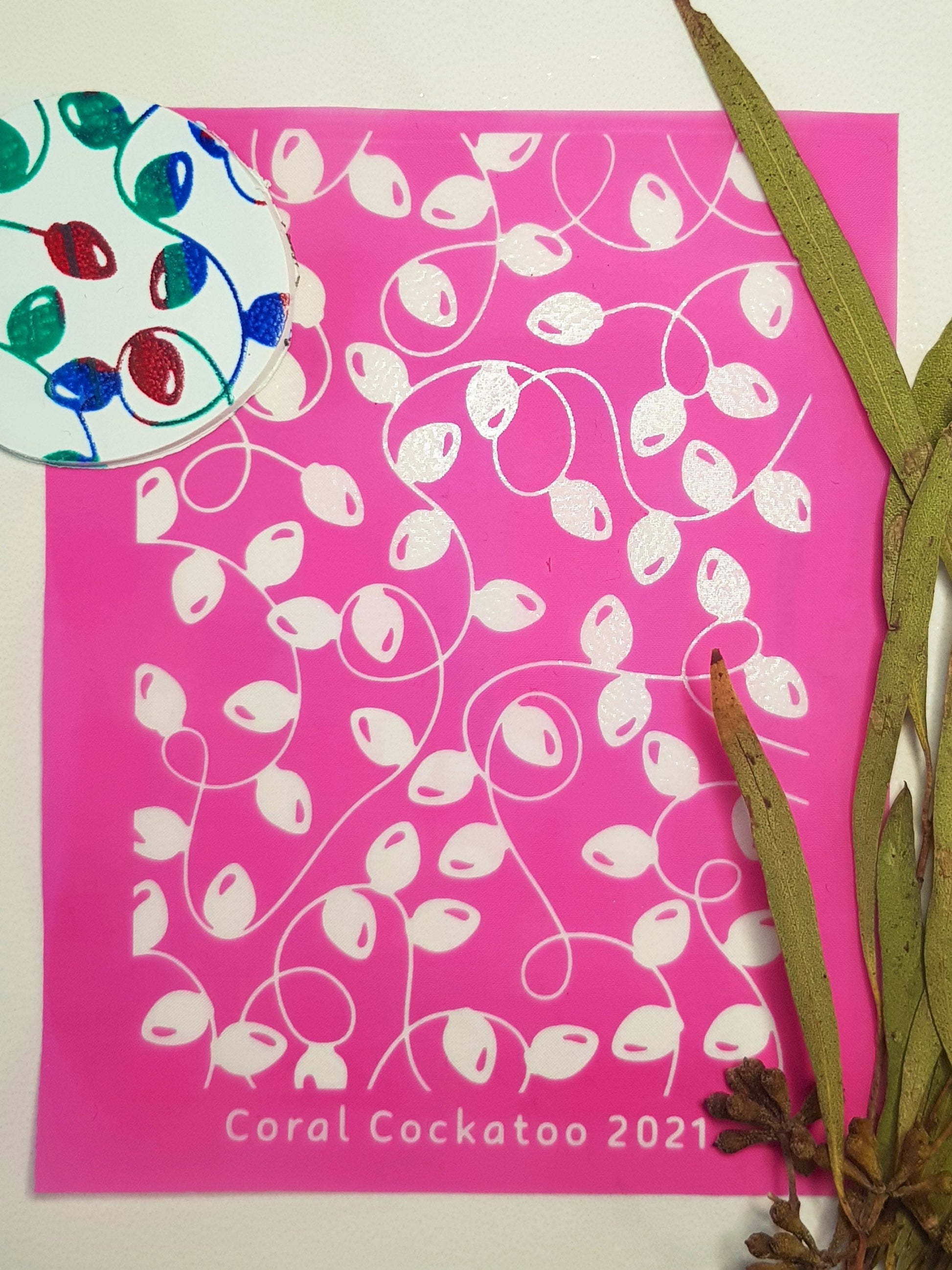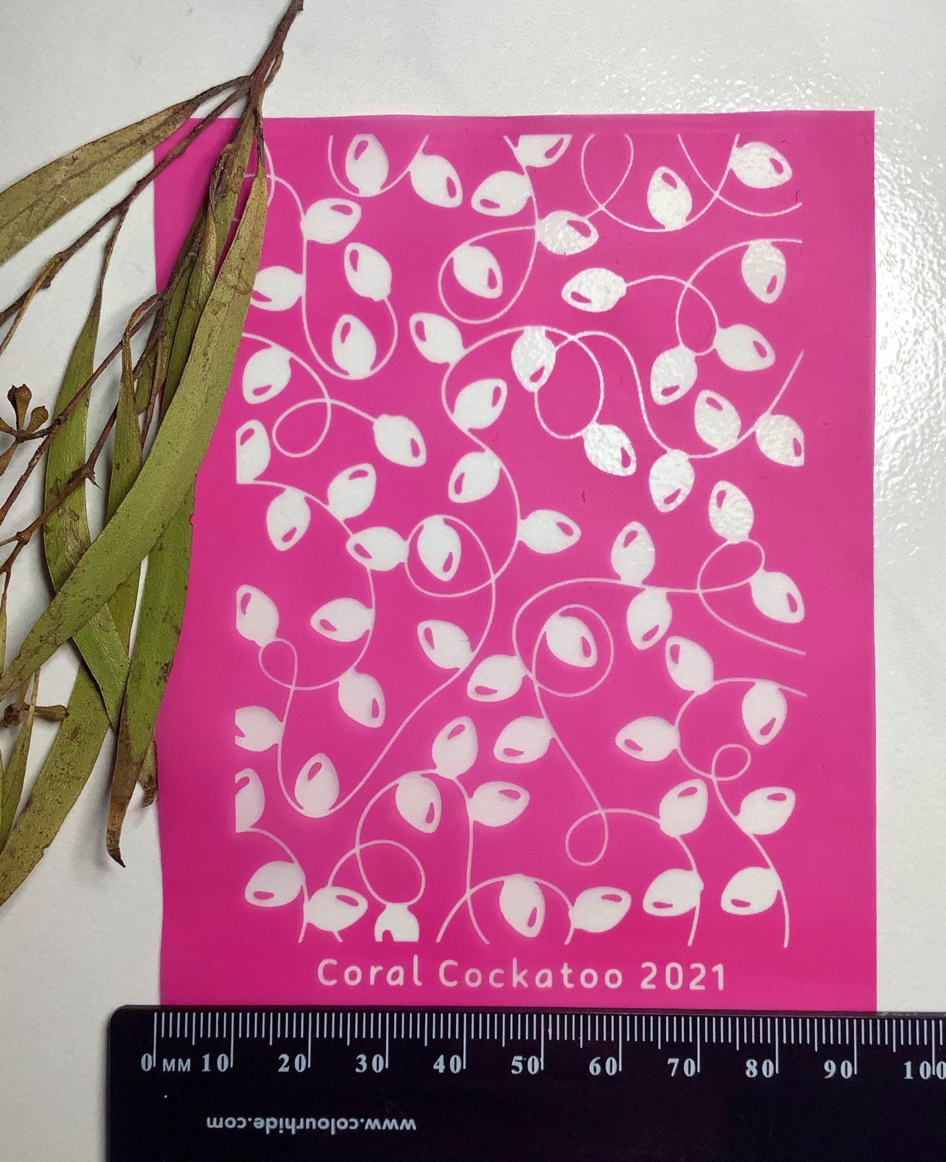 Important Info: Use your unique Coral Cockatoo Silkscreen for anything from earring and jewellery pieces to paper craft and card creations and more! The possibilities are limited only by your imagination and creativity!