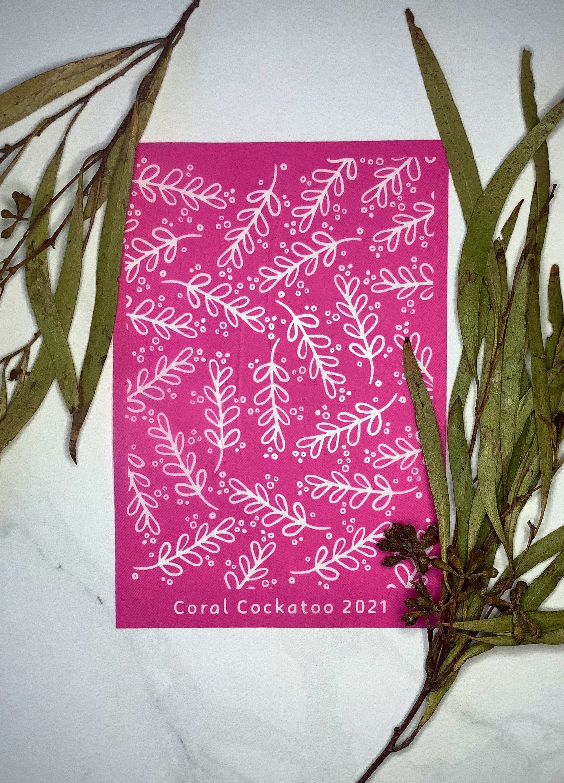 Important Info: Use your unique Coral Cockatoo Silkscreen for anything from earring and jewellery pieces to paper craft and card creations and more! The possibilities are limited only by your imagination and creativity!