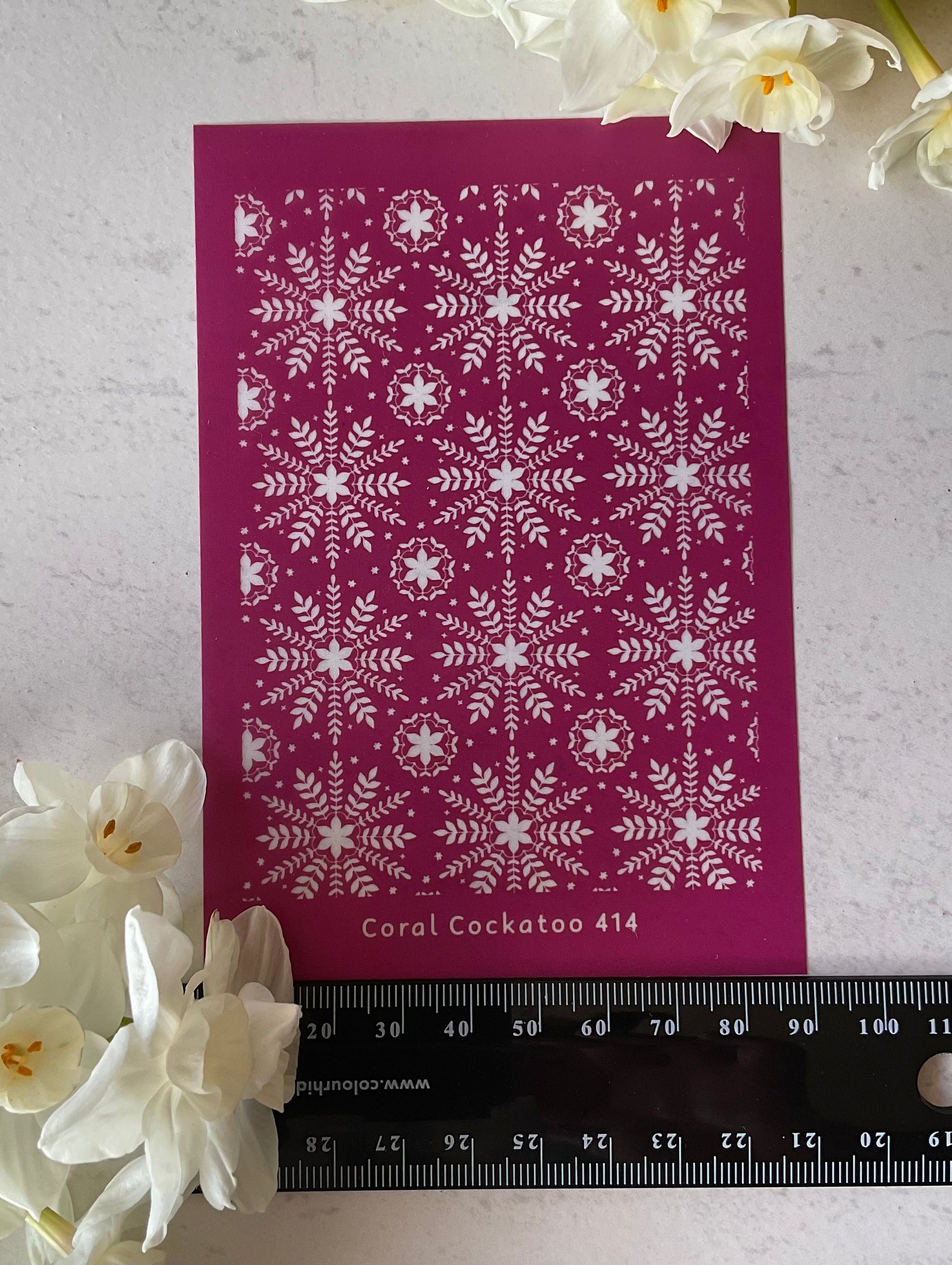 Important Info: Use your unique Coral Cockatoo Silkscreen for anything from earring and jewellery pieces to paper craft and card creations and more! The possibilities are limited only by your imagination and creativity!