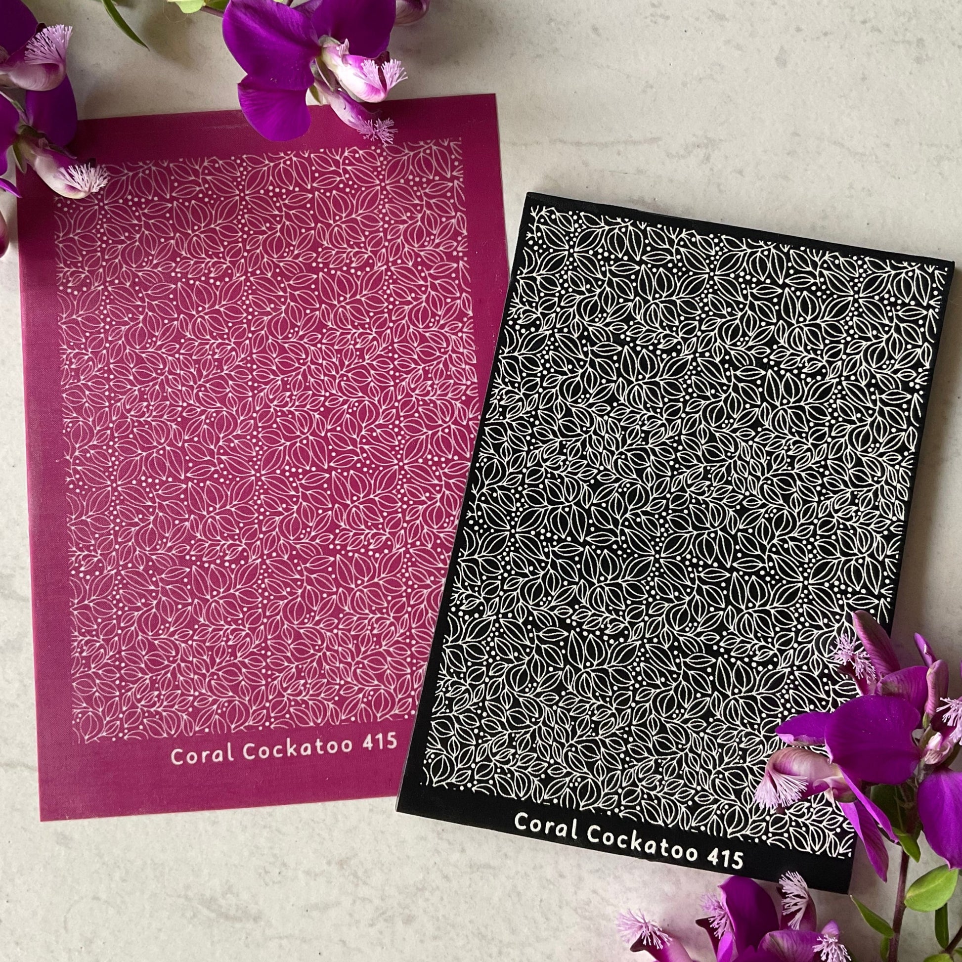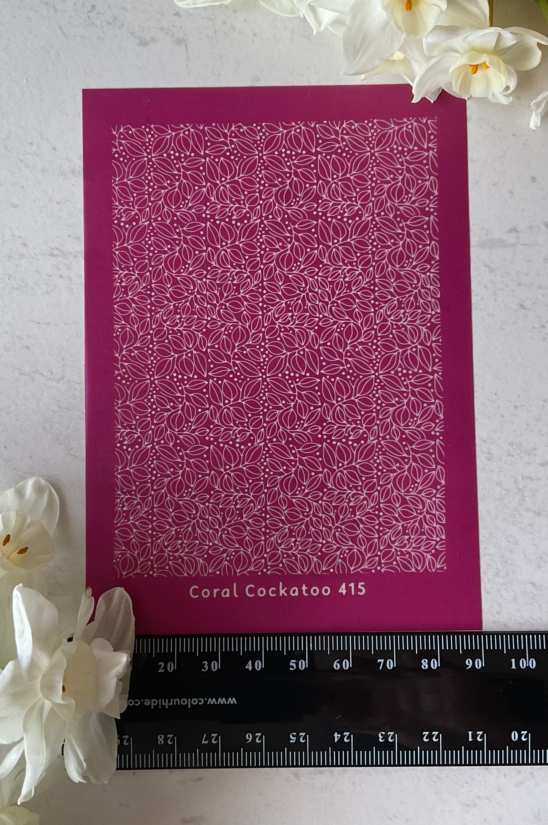 Important Info: Use your unique Coral Cockatoo Silkscreen for anything from earring and jewellery pieces to paper craft and card creations and more! The possibilities are limited only by your imagination and creativity!