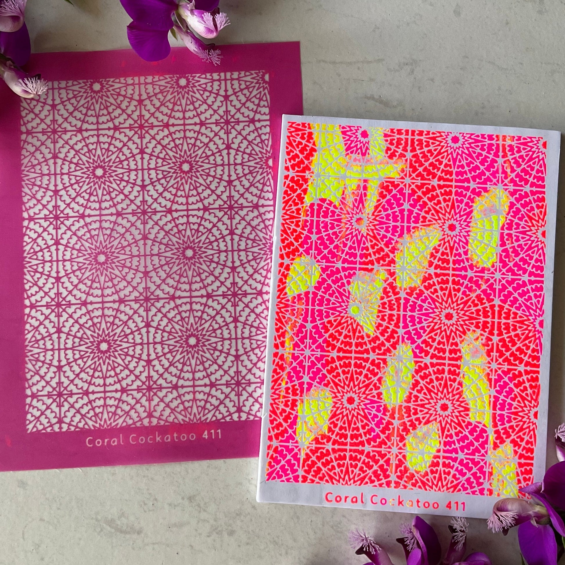 Important Info: Use your unique Coral Cockatoo Silkscreen for anything from earring and jewellery pieces to paper craft and card creations and more! The possibilities are limited only by your imagination and creativity!