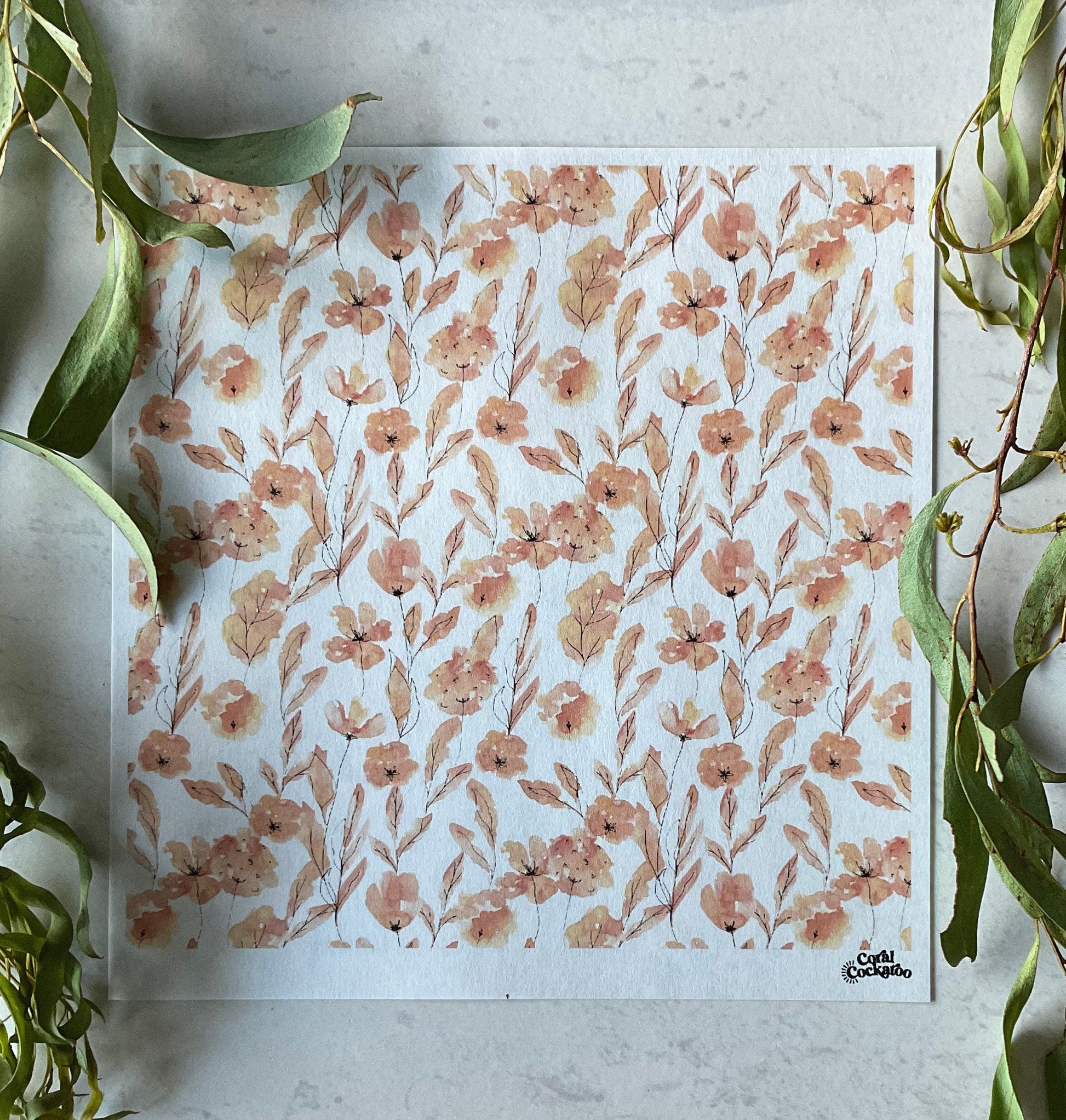 Watercolour Peach Wild Flowers Clay Tattoo 005