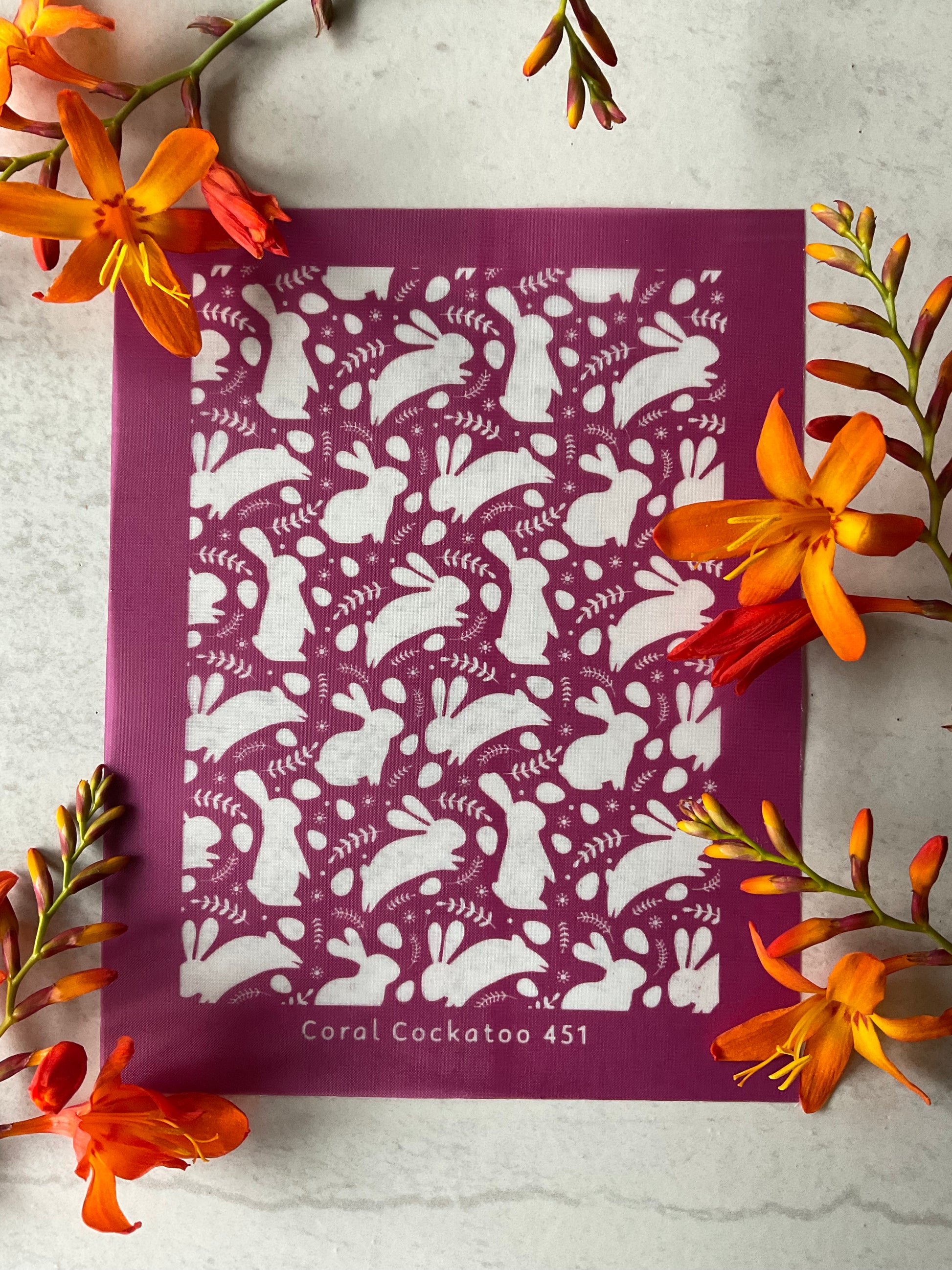 Recommendations: Coral Cockatoo recommends that you use your new Coral Cockatoo Silkscreen with a good quality highly pigmented Artists Acrylic Paint.