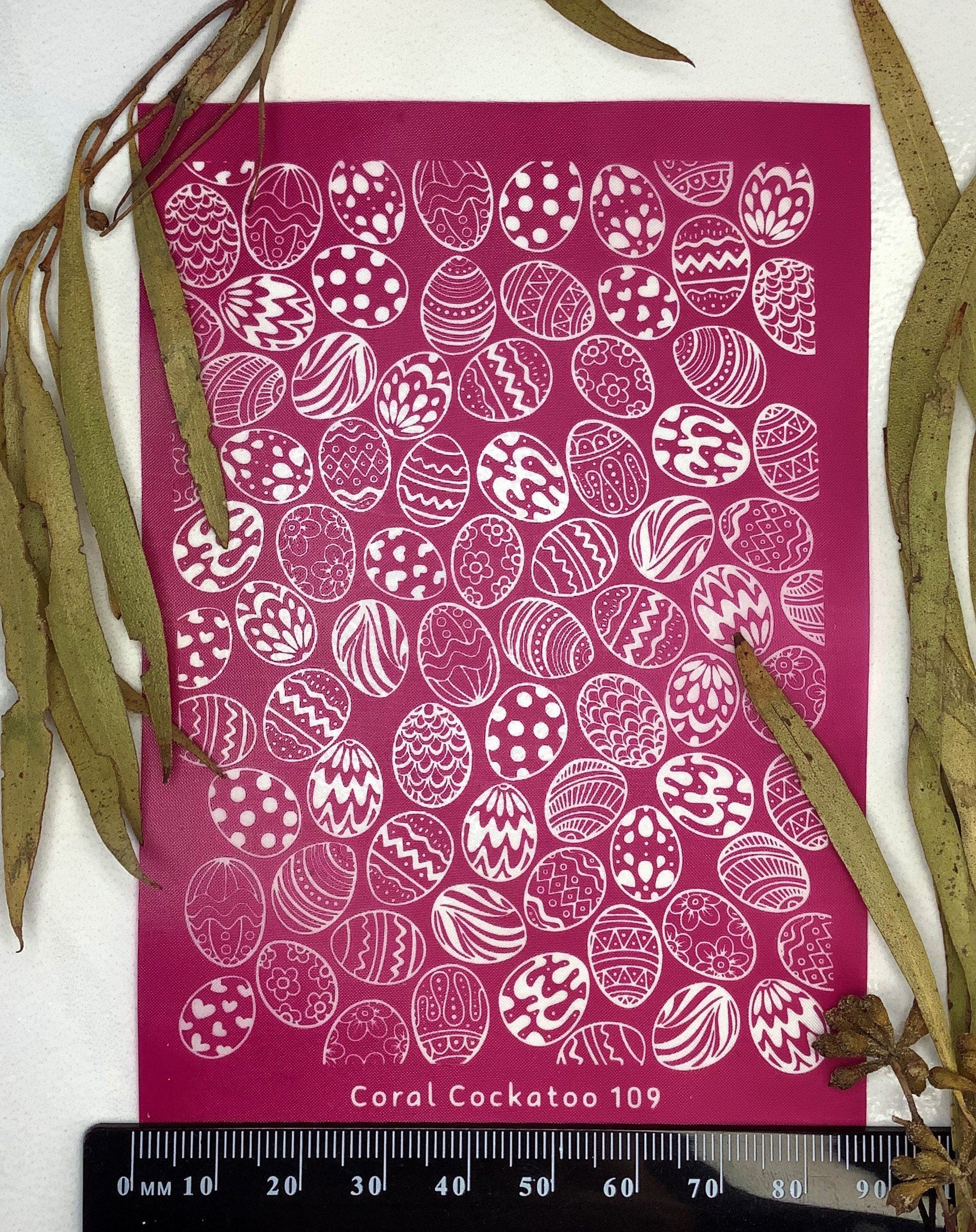 Recommendations: Coral Cockatoo recommends that you use your new Coral Cockatoo Silkscreen with a good quality highly pigmented Artists Acrylic Paint.