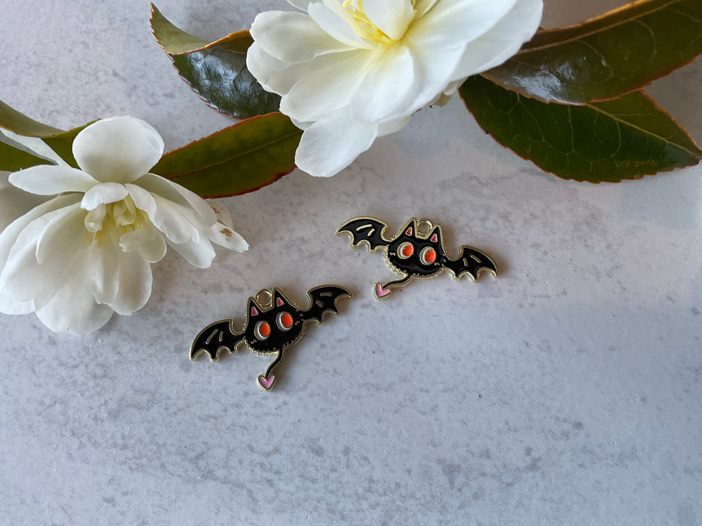 Black Demon Bat Cat Enamel Charm 35 mm 2 Pieces