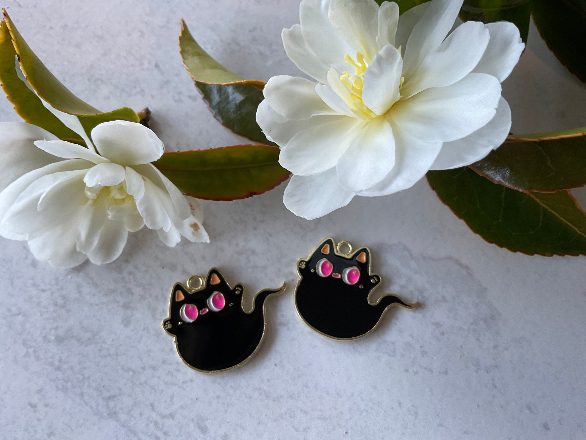Black Ghost Cat Enamel Charm 30 mm 2 Pieces