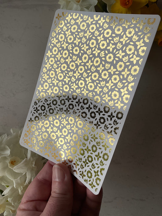 Contemporary Bohemian Florals Gold Foil Water Transfer 085