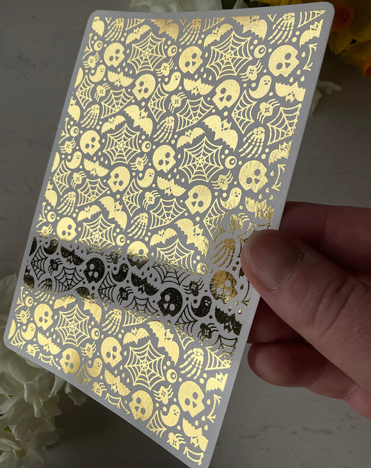 Creepy Halloween Spiders, Skulls & Spiderwebs Gold Foil 074