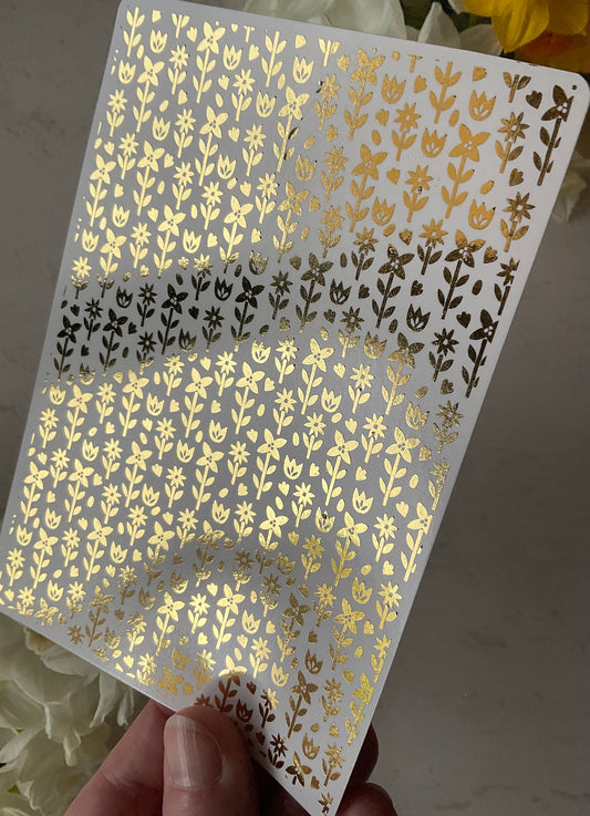 Celestial Floral Blooms Gold Foil Water Transfer 084