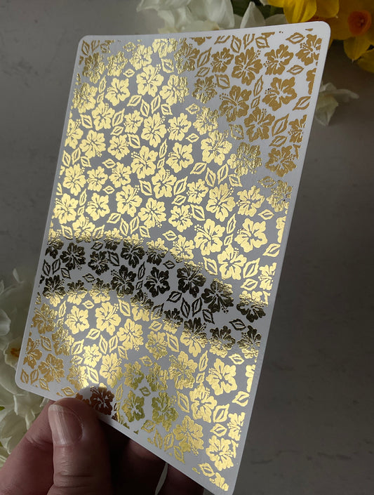 Mini Hibiscus Flowers Gold Foil 064