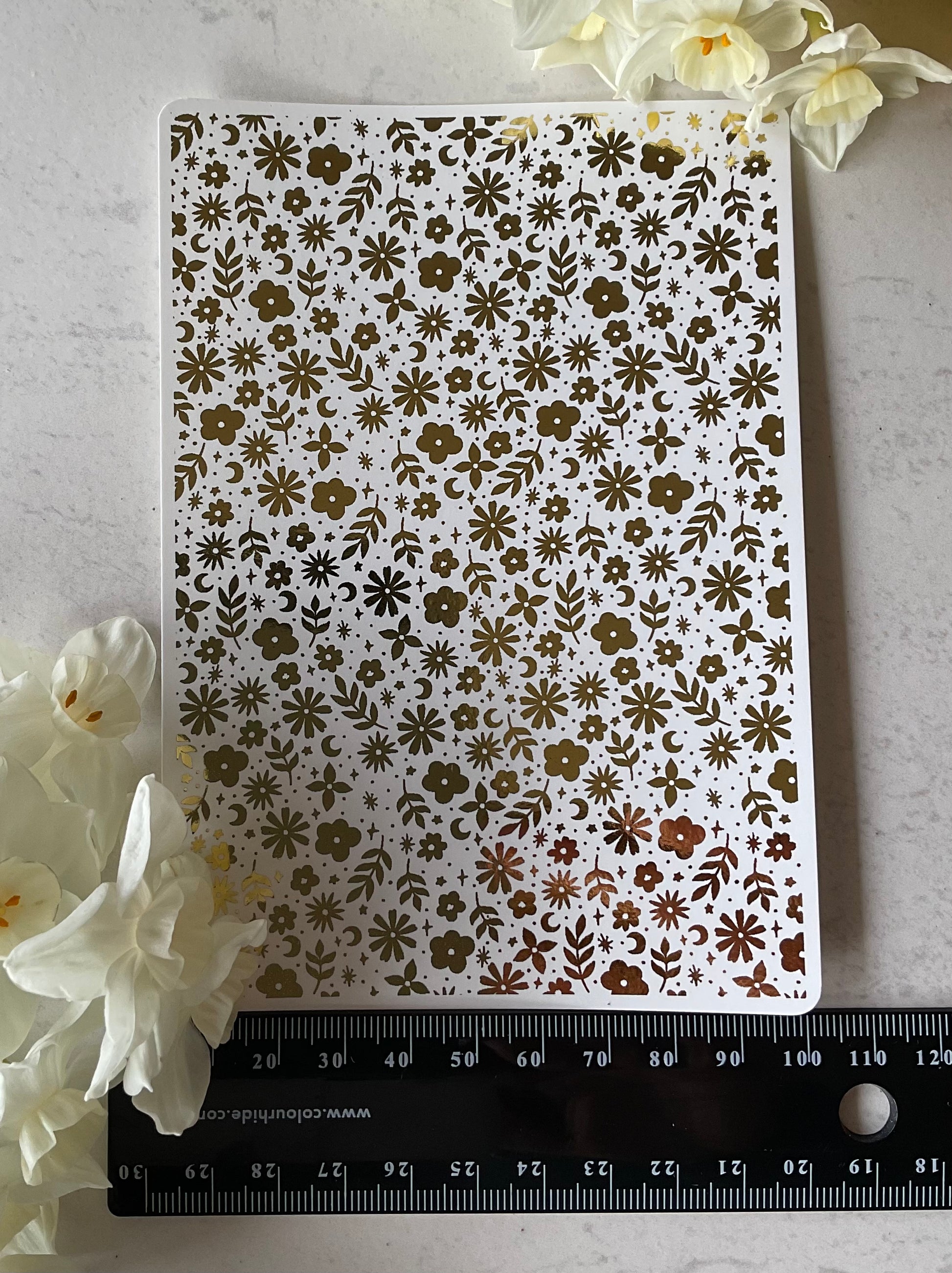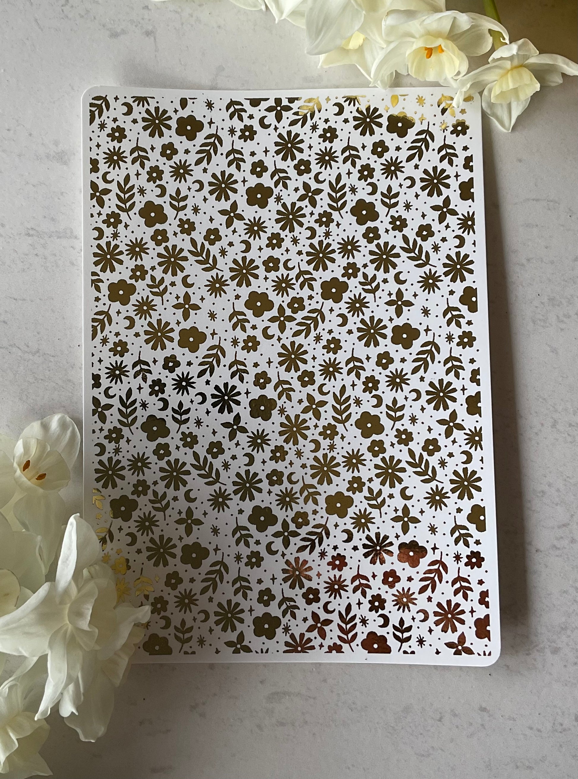 Celestial Floral Blooms Gold Foil Water Transfer 084